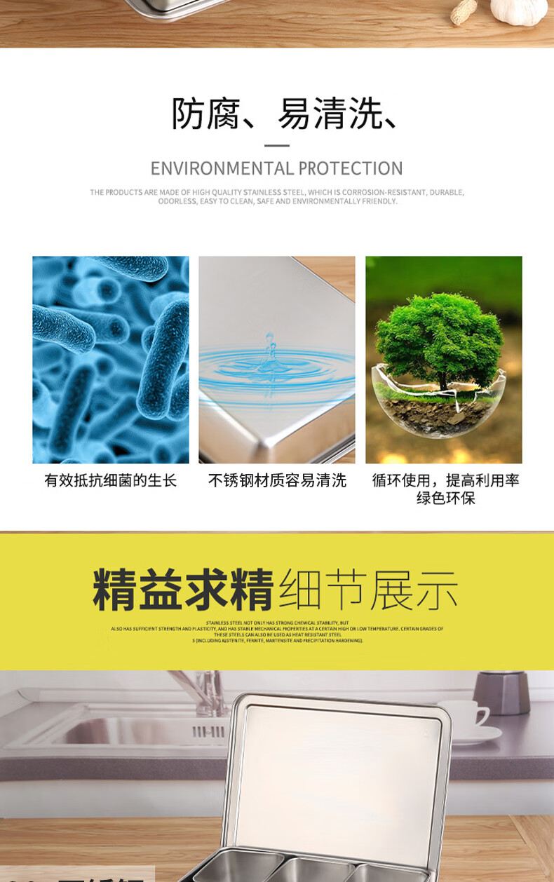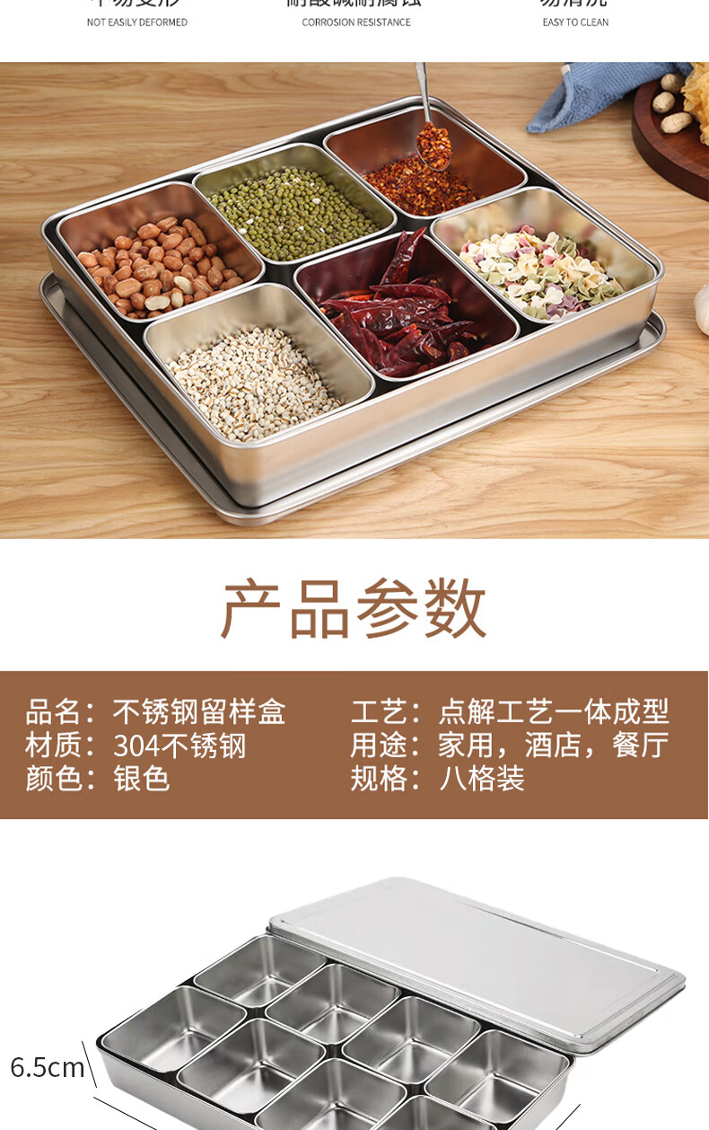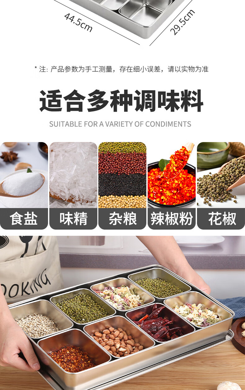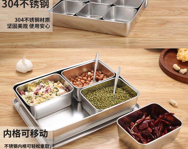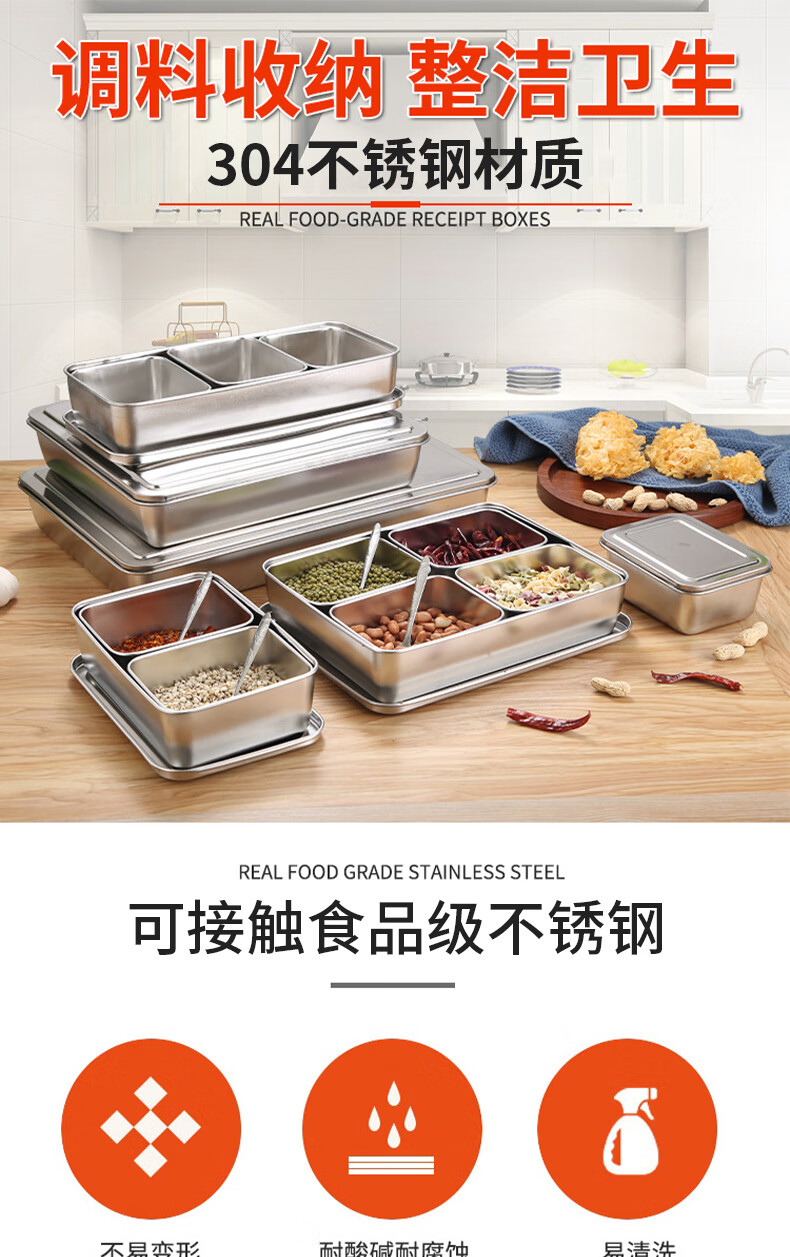 • 商品名称:Edo 304不锈钢商用高档全钢调味盒 酒店餐厅调料储物盒8格+8勺带盖 1/套