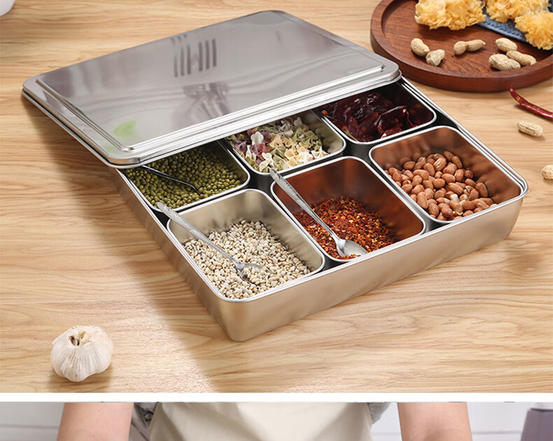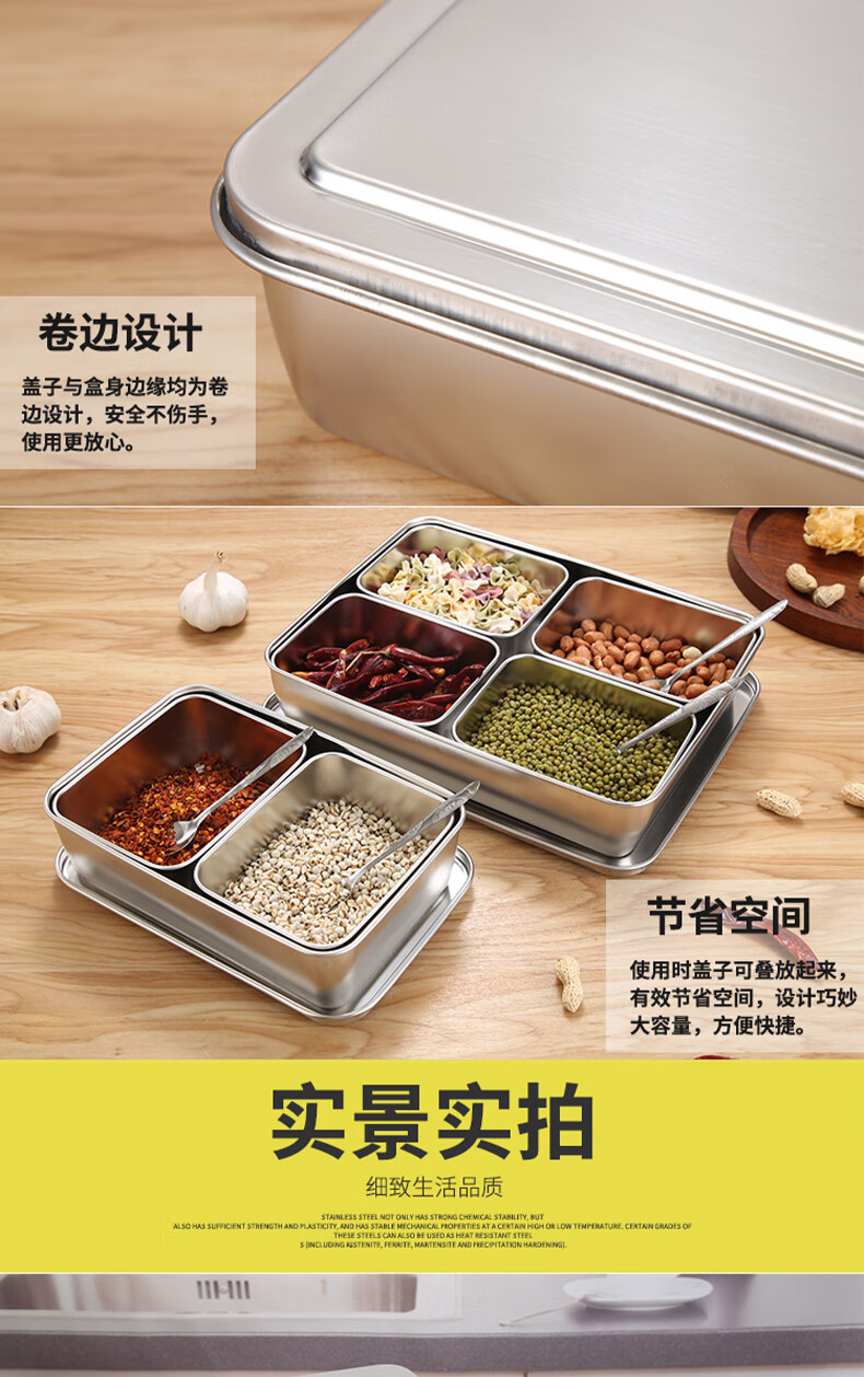 厨具  > 厨房储物  > 厨房储物器皿  >  Edo  >  Edo 304不锈钢商用高档全钢调味盒 酒店餐厅调料储物盒8格+8勺带盖 1/套