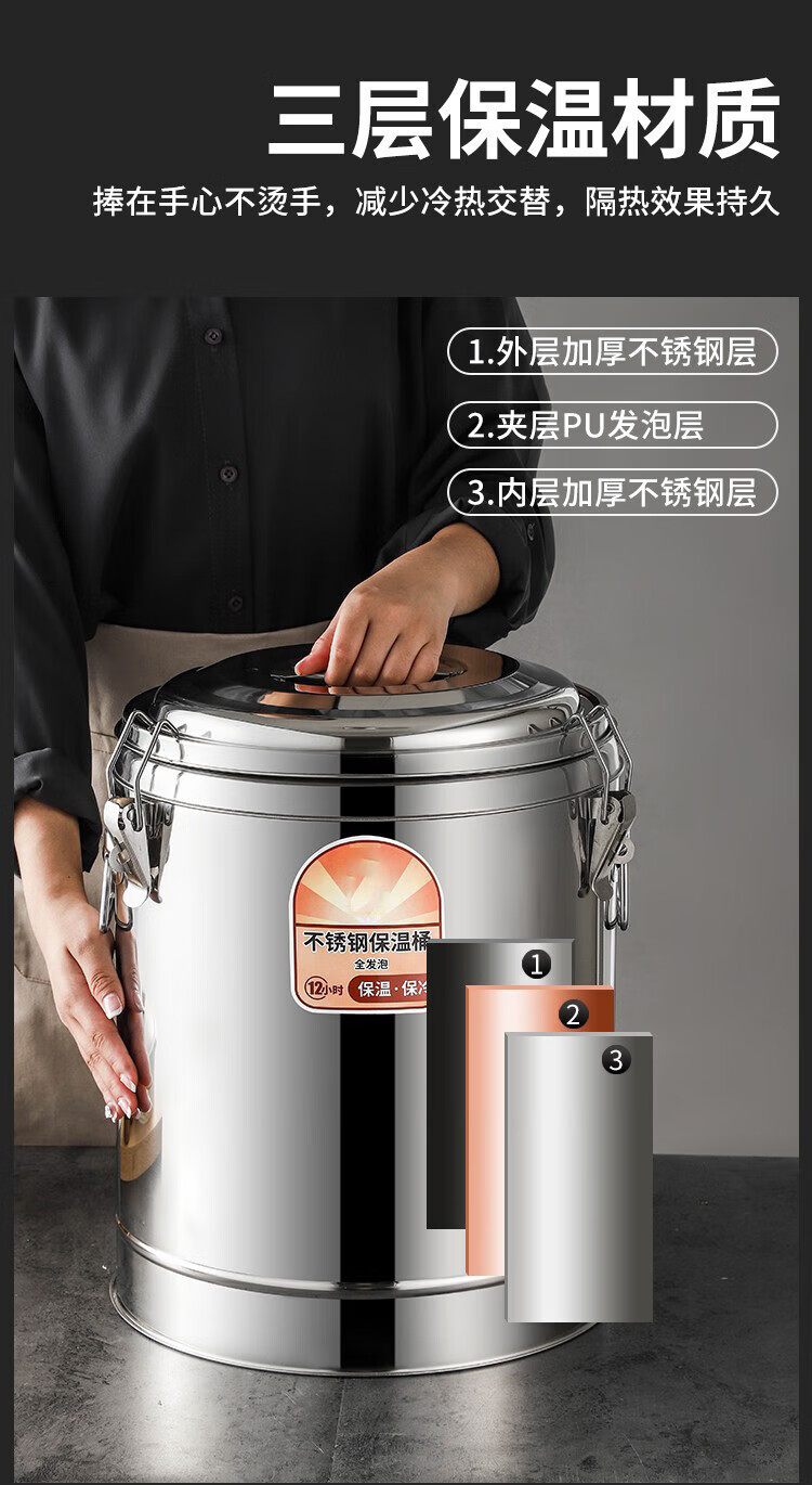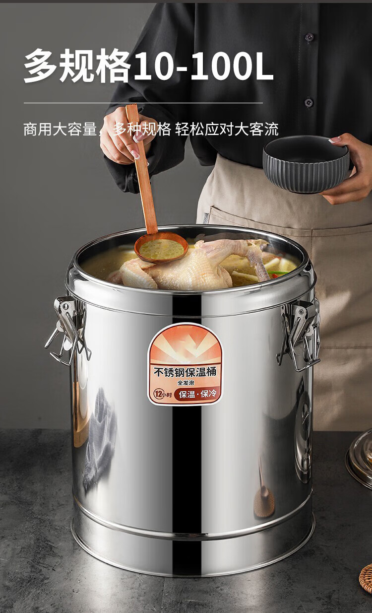• 商品名称:佳品家厨 304保温桶不锈钢加厚保温粥桶茶水桶 80L无龙头 保温桶/个