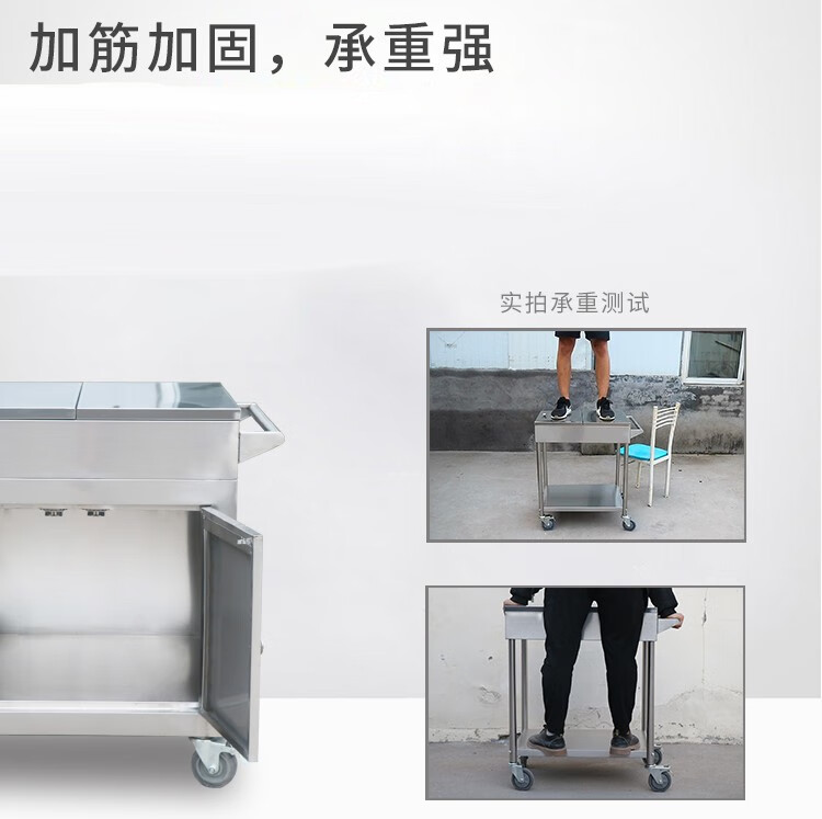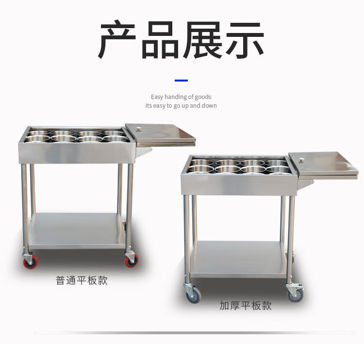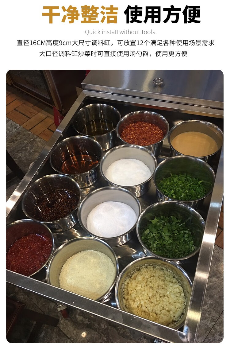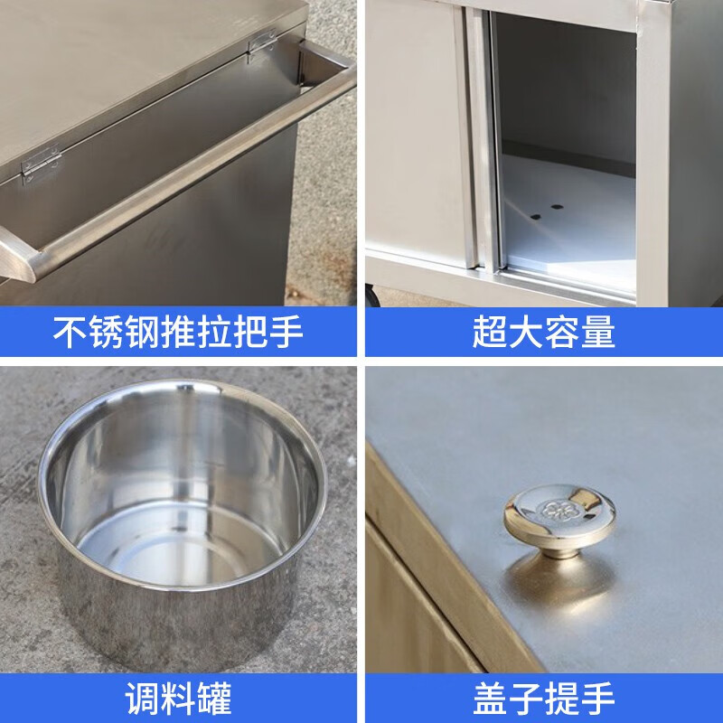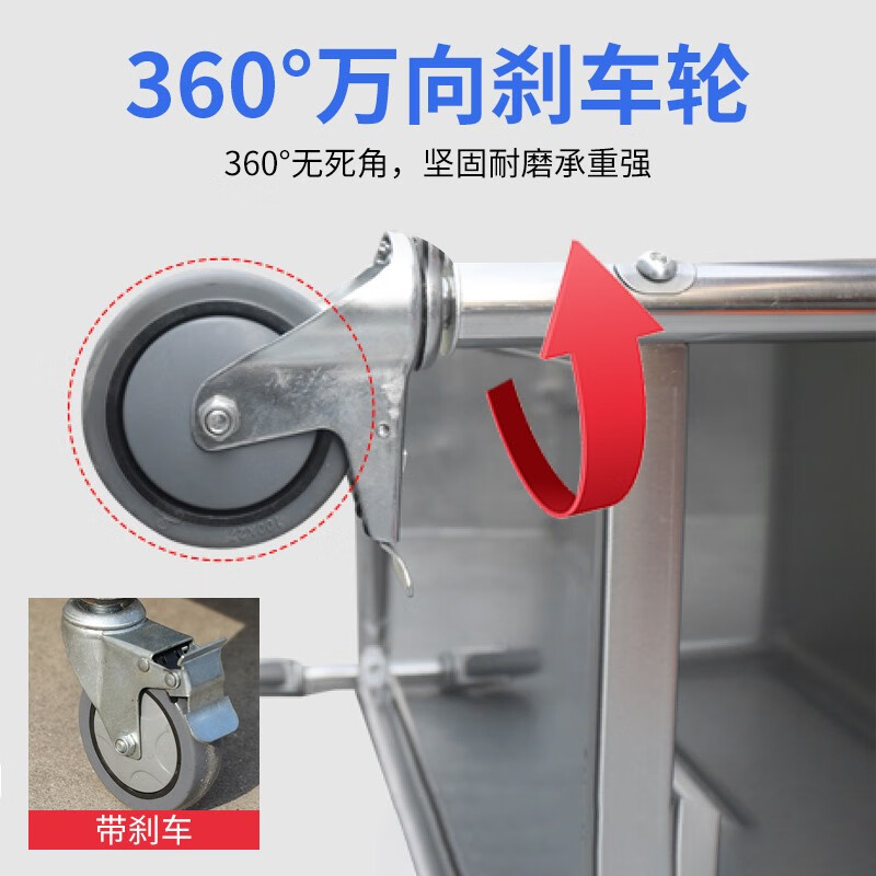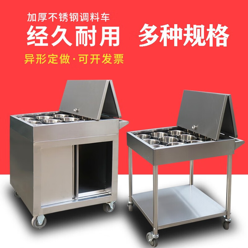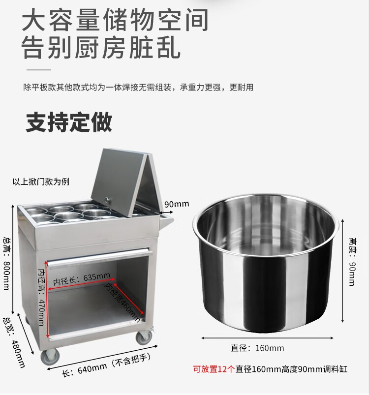 • 商品名称:丽佳厨具 不锈钢调料车调料台多功能调味【标准】上掀门款+刹车轮 保温桶/个