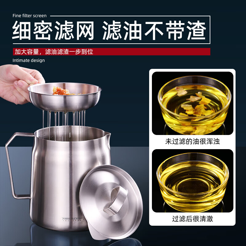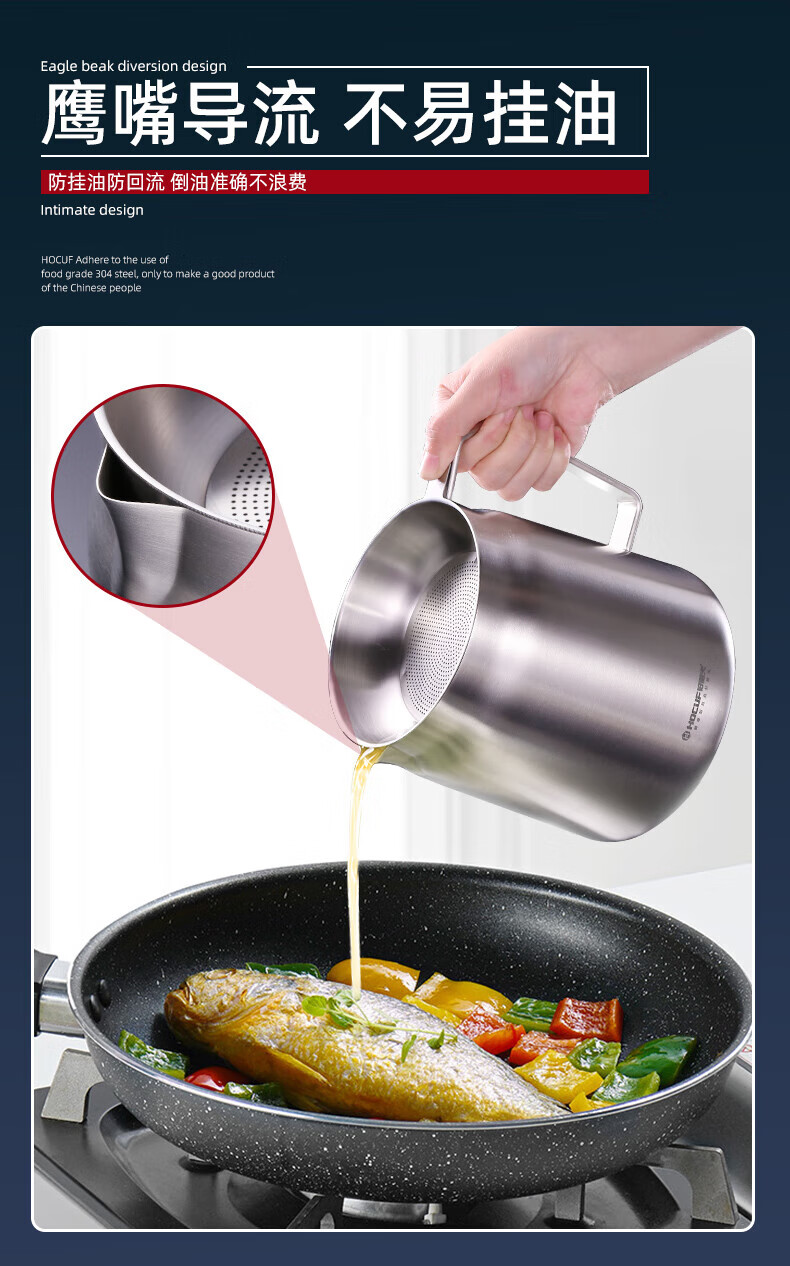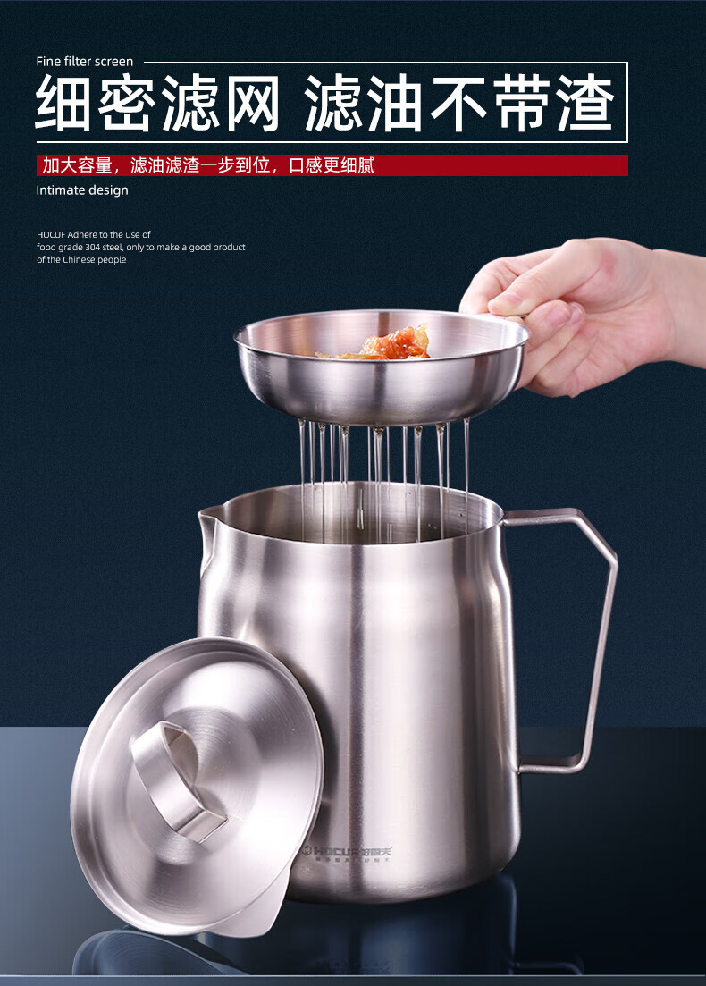 好厨夫(HOCUF)304不锈钢油壶过滤油渣滤大容量加厚储油罐沥油神器 滤油壶1.5L 滤油壶1.5L/个