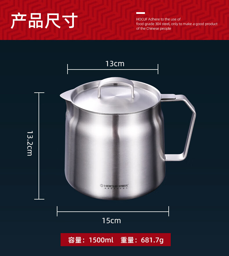 • 商品名称:好厨夫(HOCUF)304不锈钢油壶过滤油渣滤大容量加厚储油罐沥油神器 滤油壶1.5L 滤油壶1.5L/个