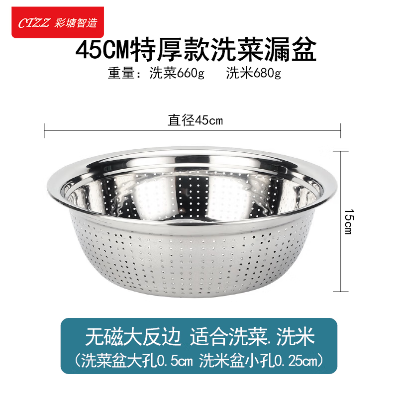 • 商品名称:彩塘智造 不锈钢大漏盆水果盆洗菜盆沥水盆 45CM特厚款洗菜漏盆 45CM特厚款洗菜漏盆/个