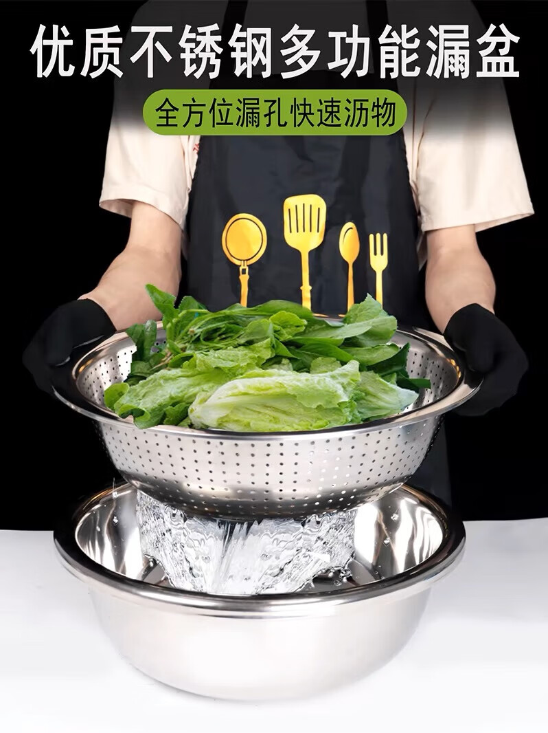 商品名称: 彩塘智造 不锈钢大漏盆水果盆洗菜盆沥水盆 45CM特厚款洗菜漏盆 45CM特厚款洗菜漏盆/个