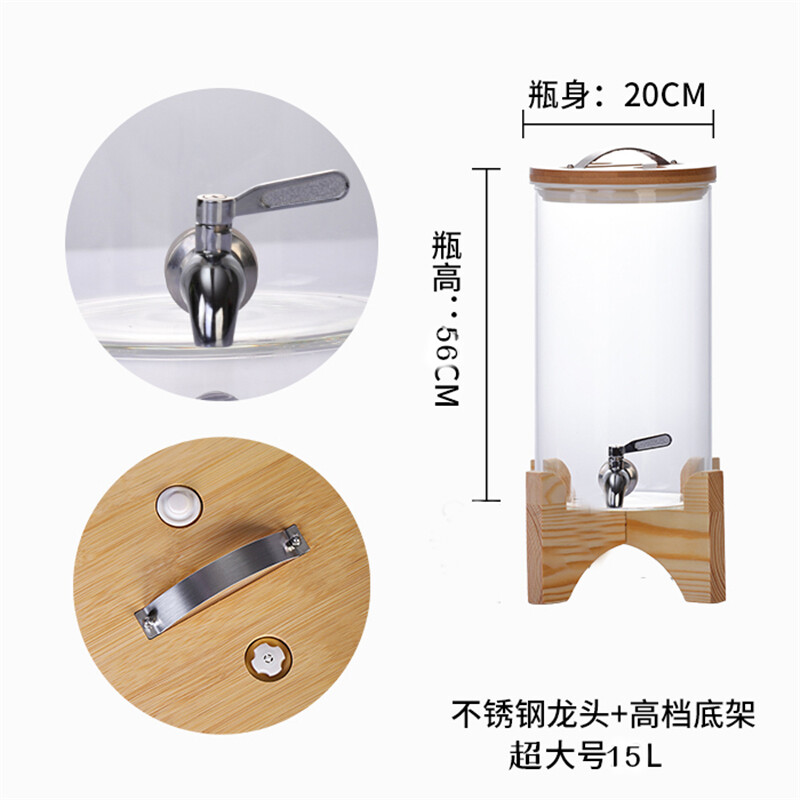 丹诗致远 耐高温玻璃冷水壶带龙头商用大容量柠檬饮料可乐果汁桶家用凉水壶 15升高档底座不锈钢龙头 15升高档底座不锈钢龙头/个