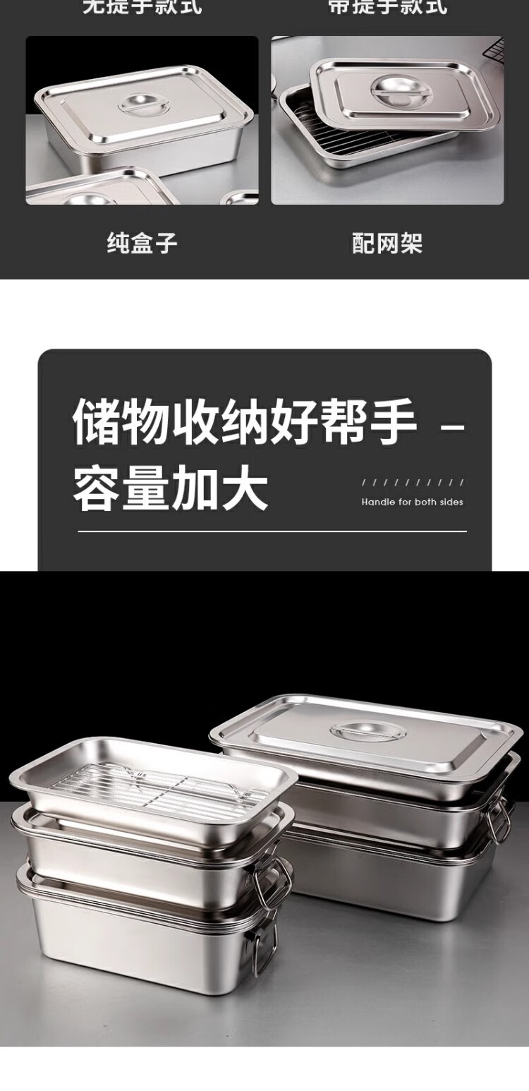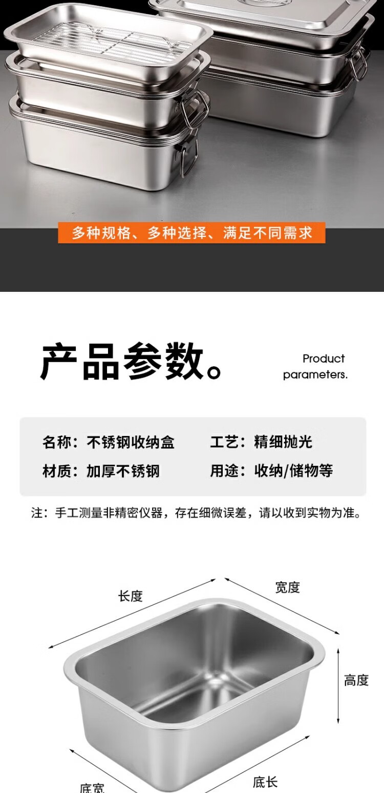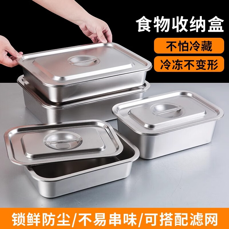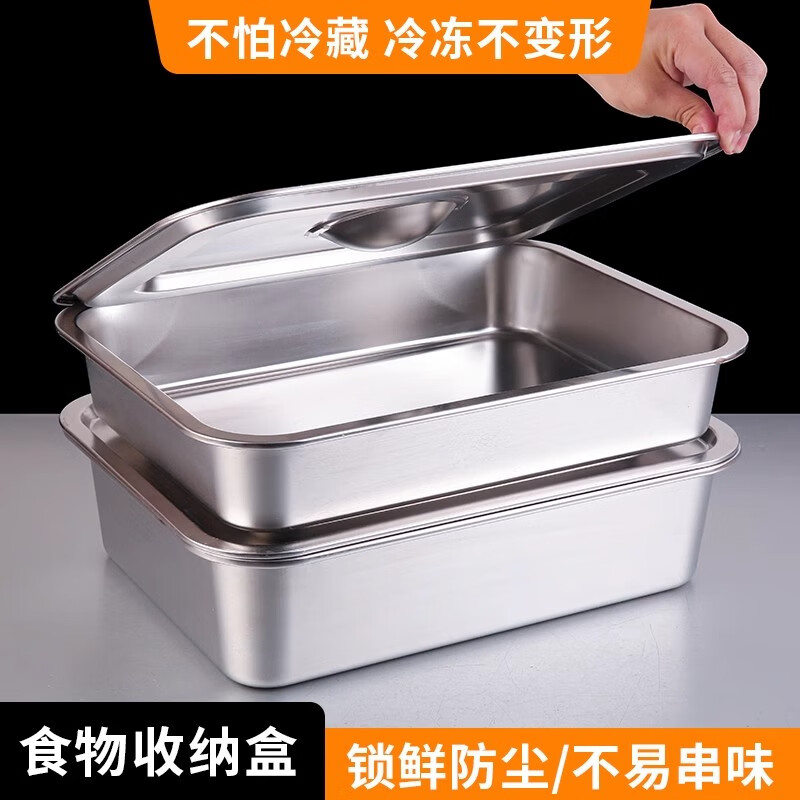 商品名称: 京清福 不锈钢食物冷冻收纳盒带盖食品储物盒商用 长方盒36*27*10cm 长方盒36*27*10cm/个