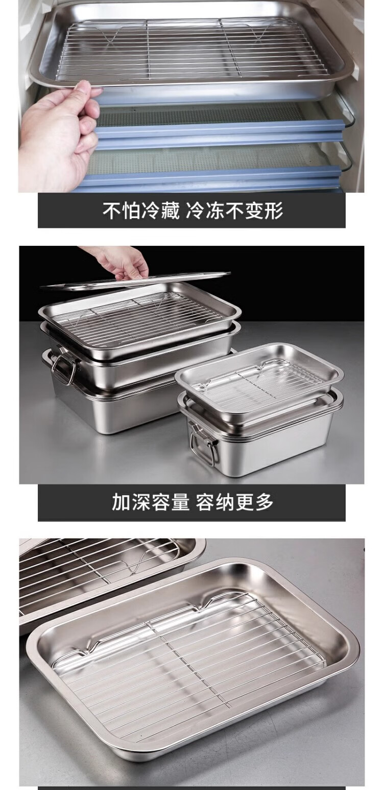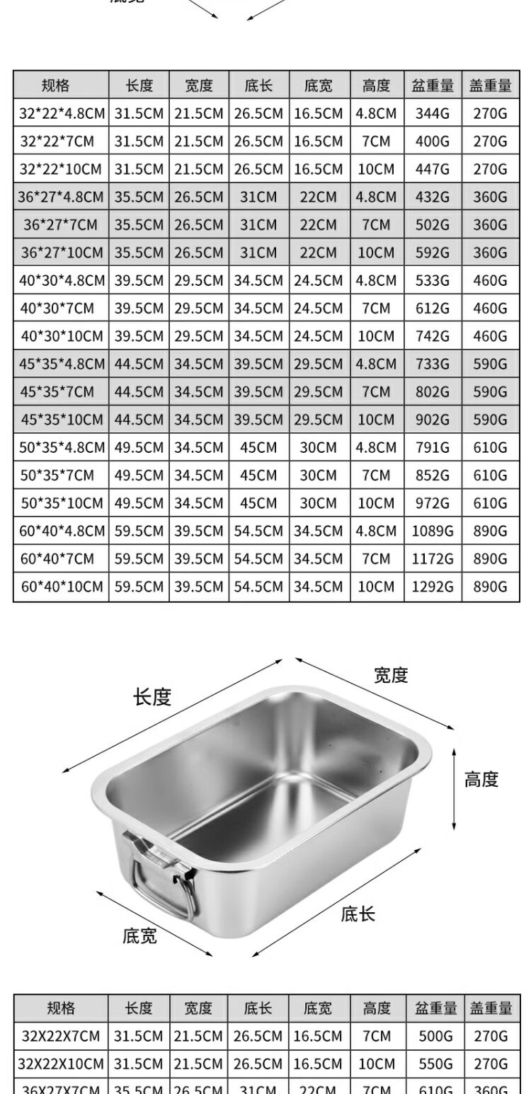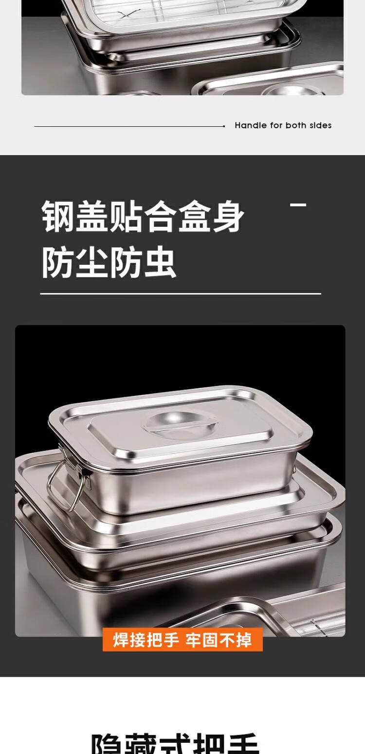 商品名称: 京清福 不锈钢食物冷冻收纳盒带盖食品储物盒商用 长方盒36*27*10cm 长方盒36*27*10cm/个