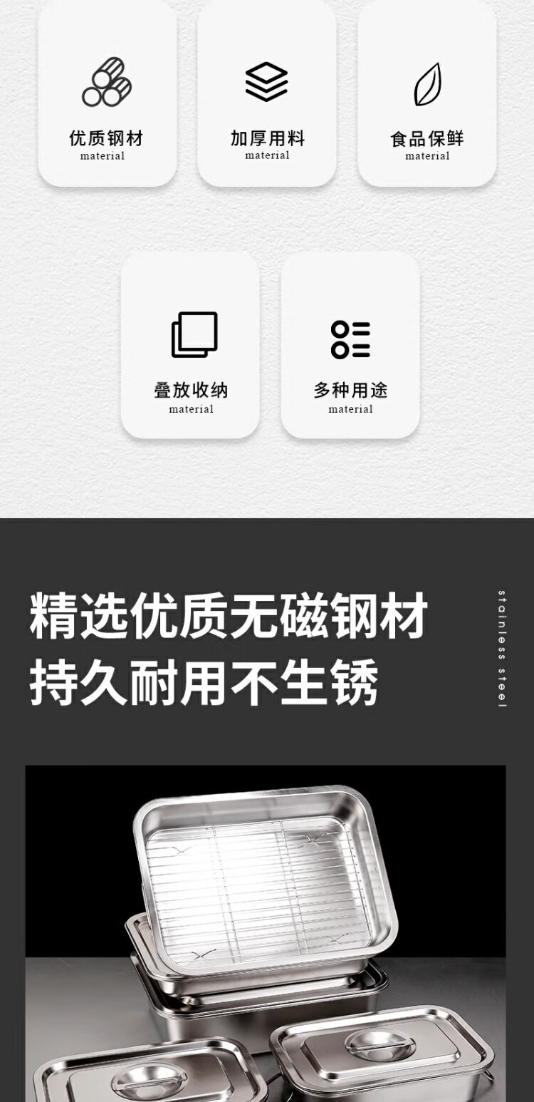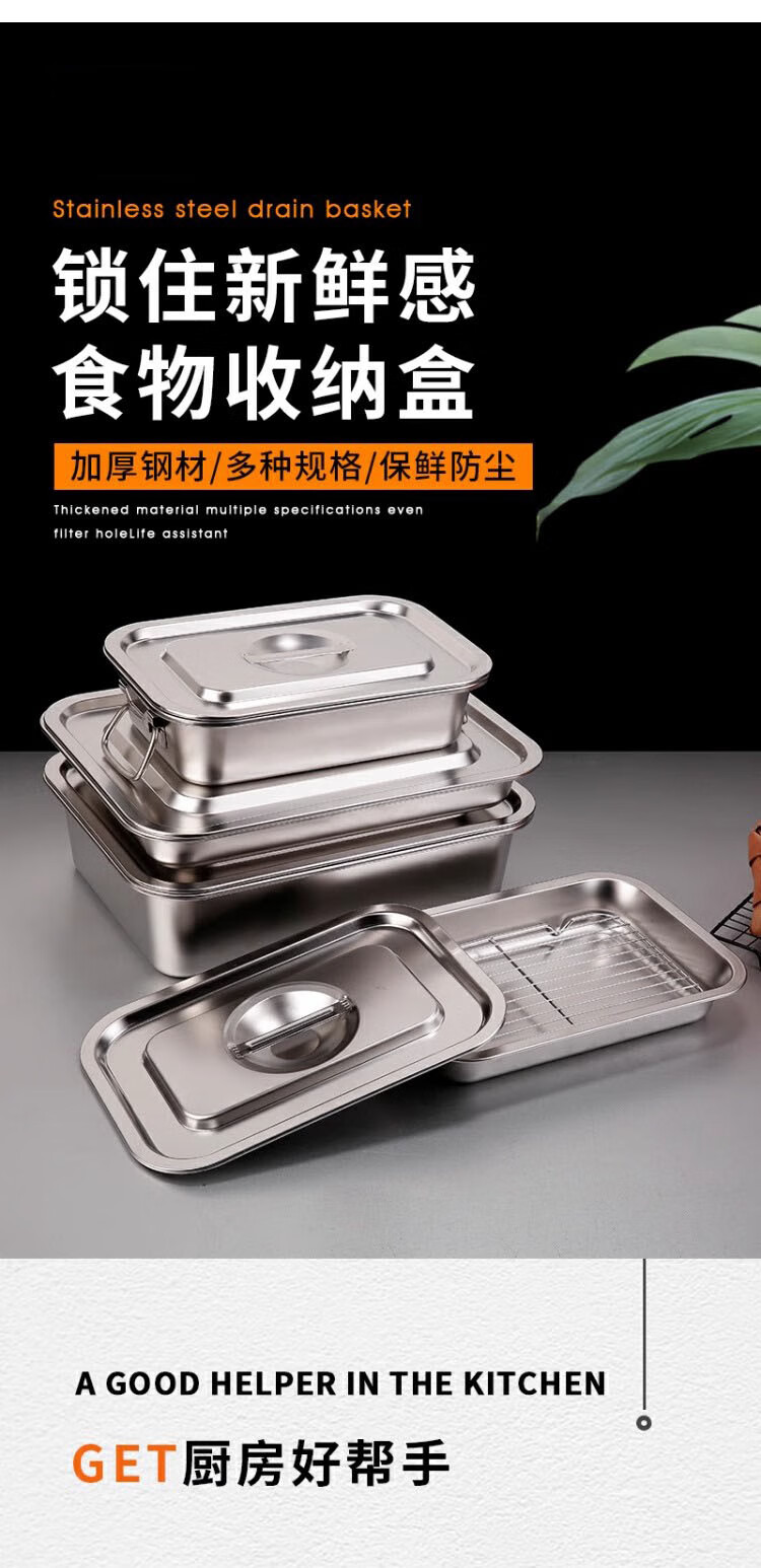 • 商品名称:京清福 不锈钢食物冷冻收纳盒带盖食品储物盒商用 长方盒36*27*10cm 长方盒36*27*10cm/个