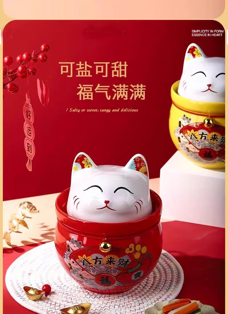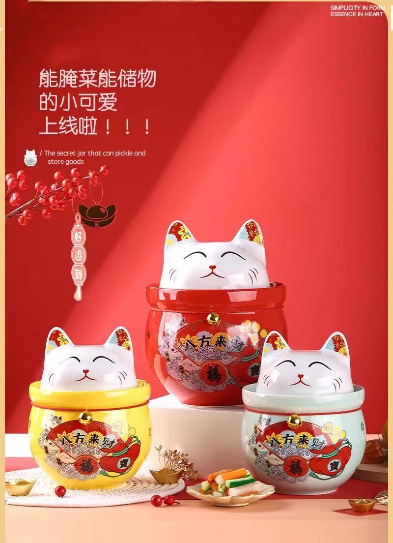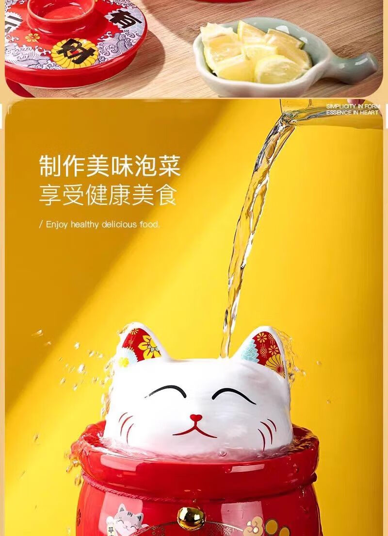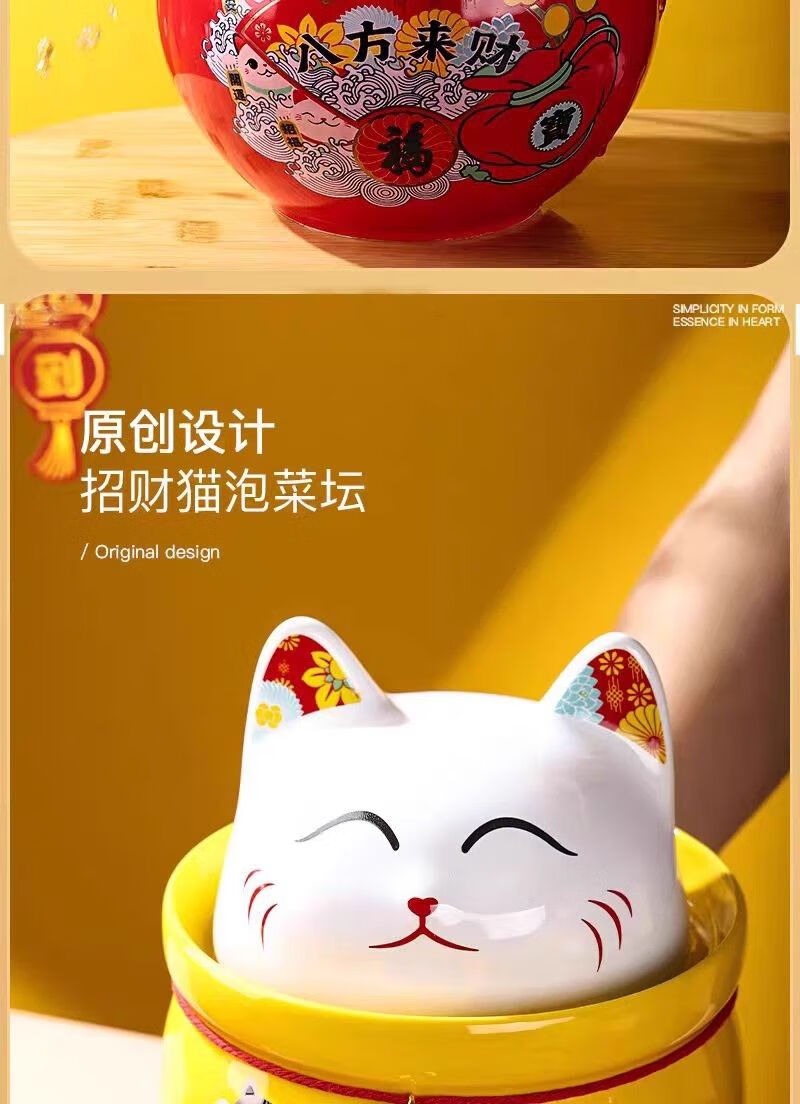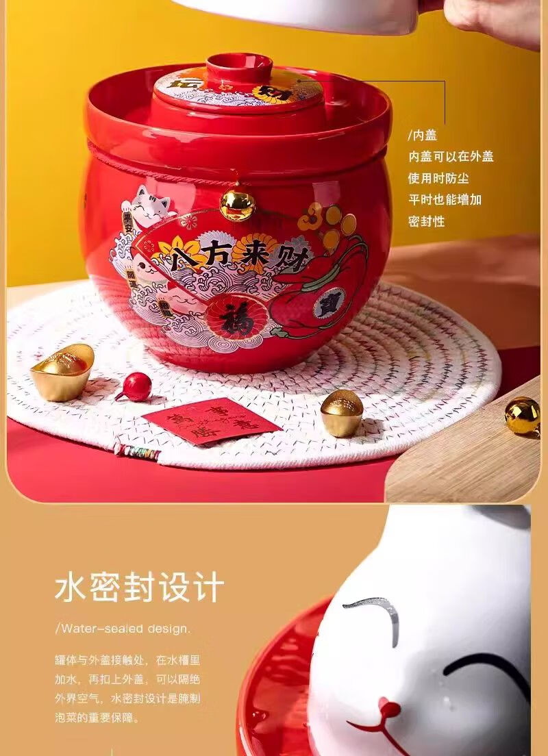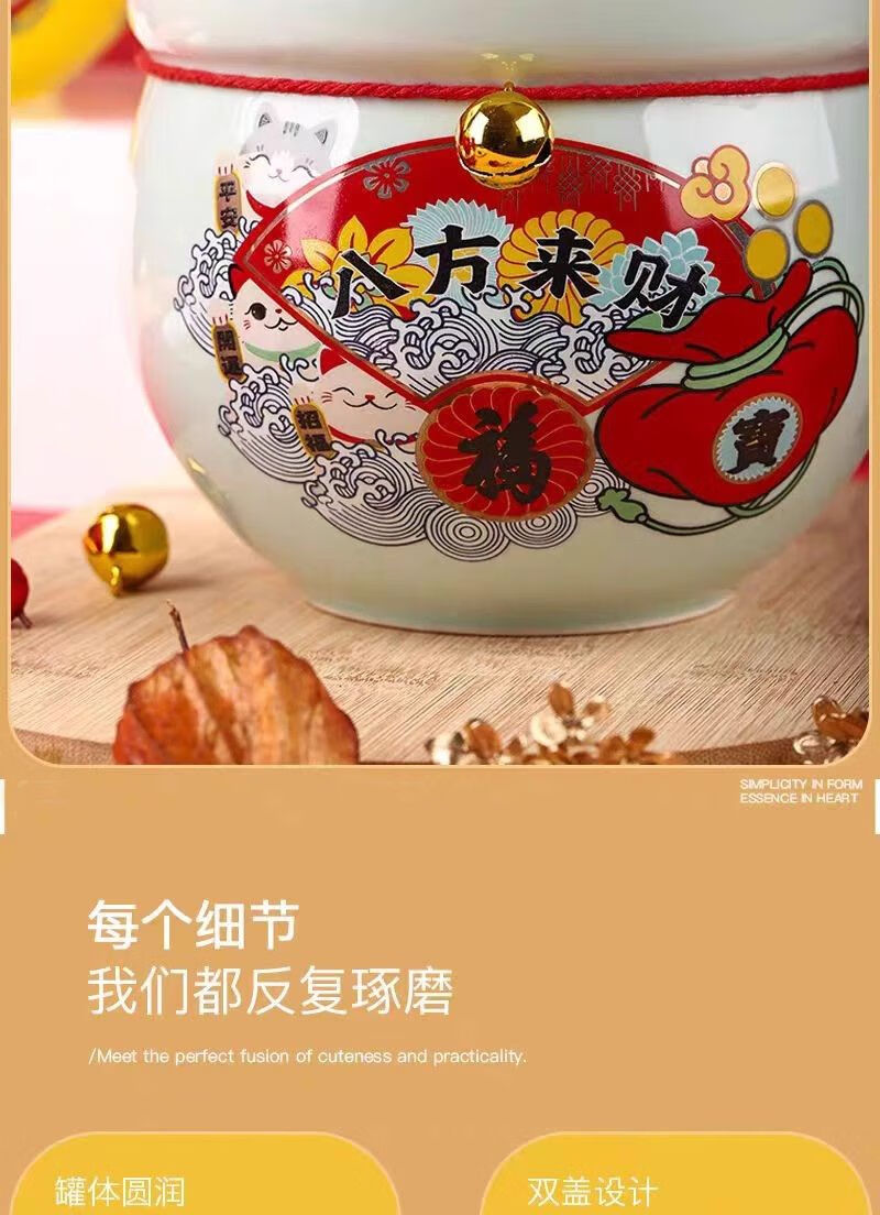• 商品名称:微娜猪油罐陶瓷泡菜坛招财猫泡菜坛子辣椒油罐密封罐储物罐糖果坚果罐 沧浪青3.8升送夹子/个