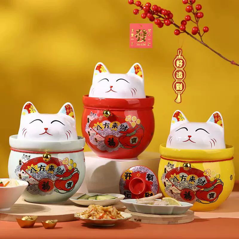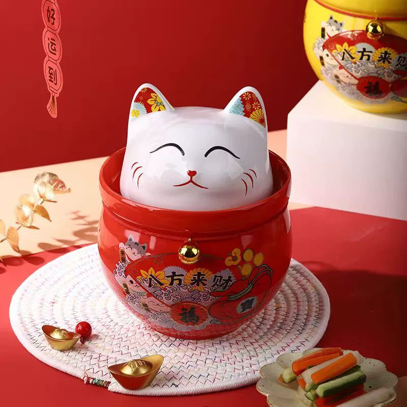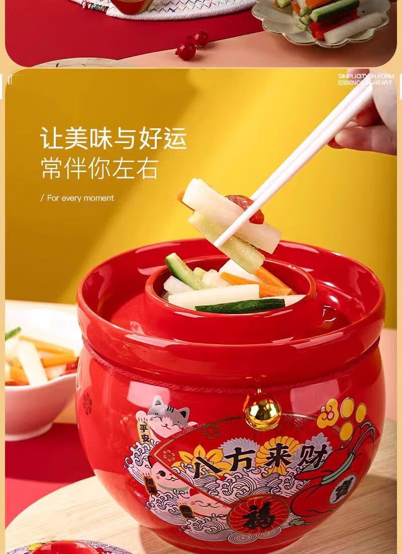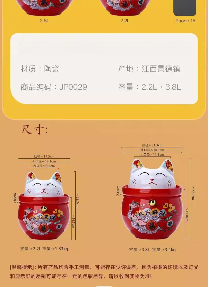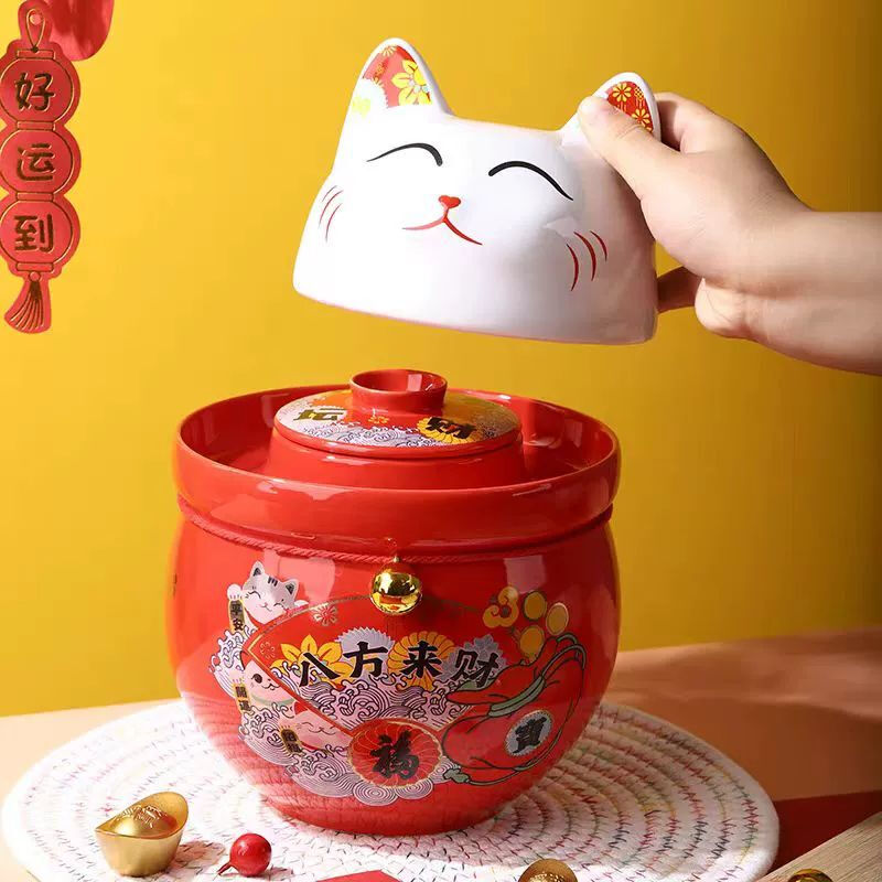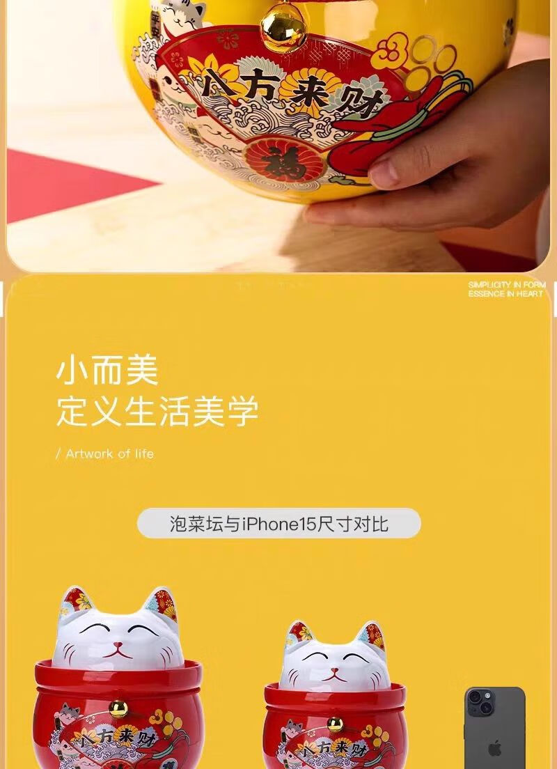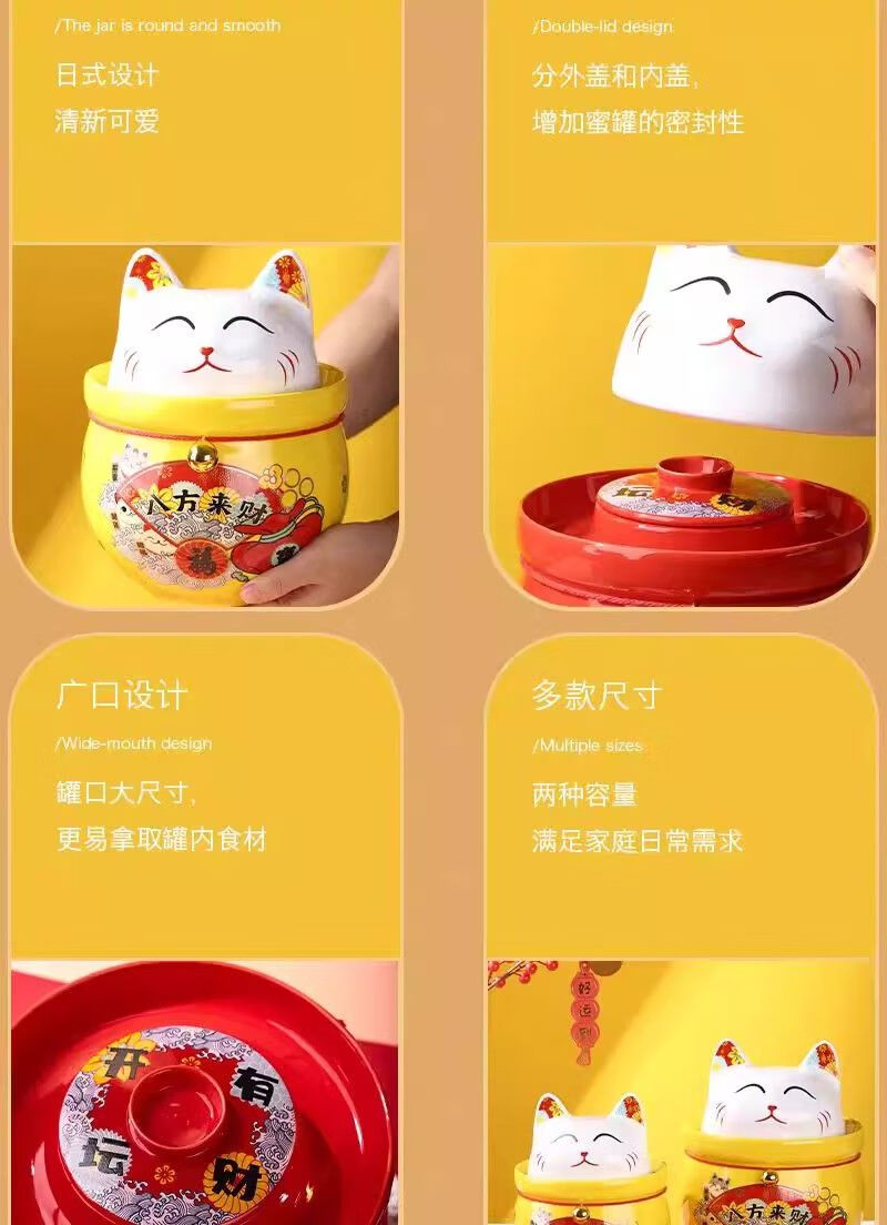 • 商品名称:微娜猪油罐陶瓷泡菜坛招财猫泡菜坛子辣椒油罐密封罐储物罐糖果坚果罐 沧浪青3.8升送夹子/个