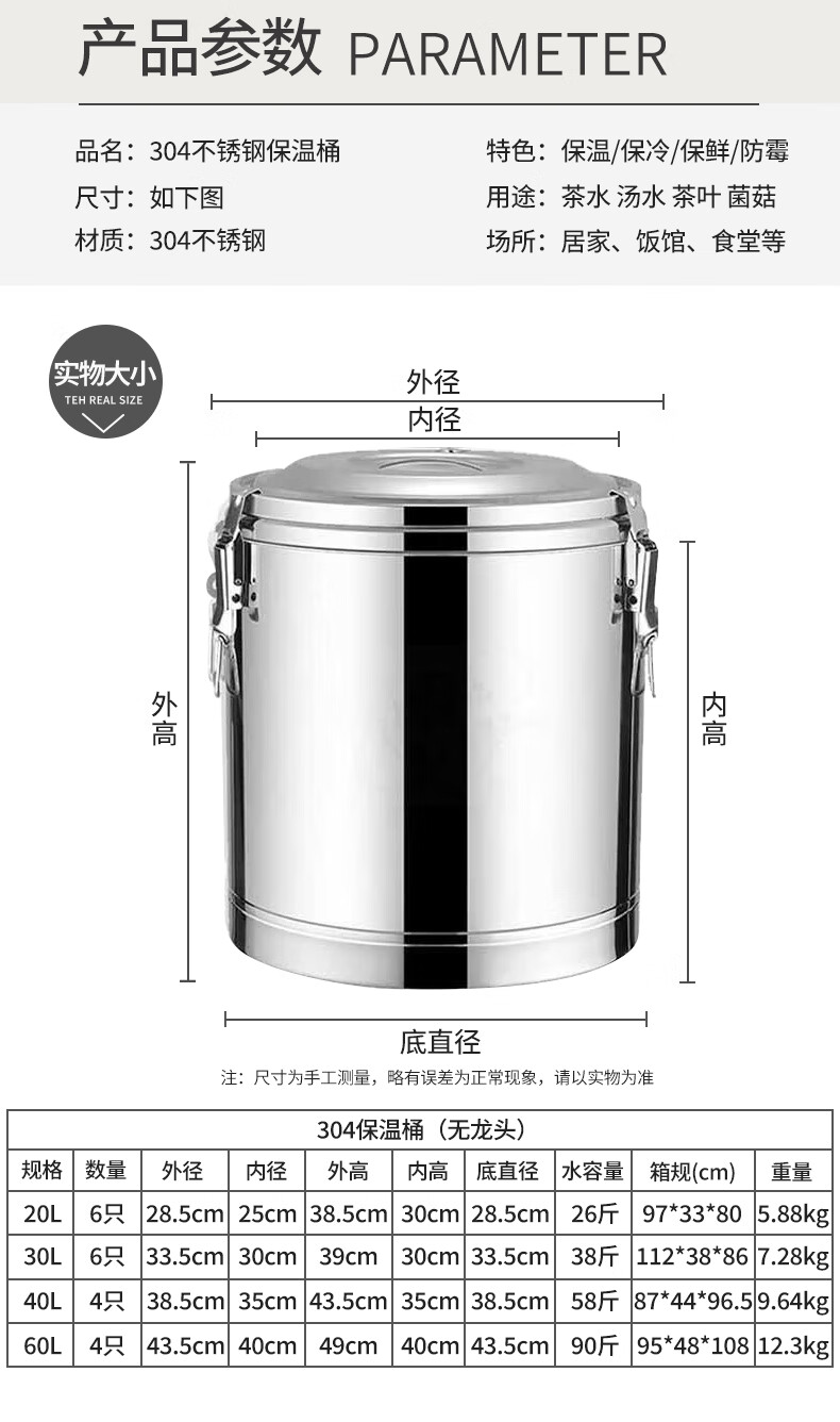 • 商品名称:希耀 304不锈钢保温桶商用饭桶豆浆桶双层冰桶储水桶可定制 无龙头20L 无龙头20L/个