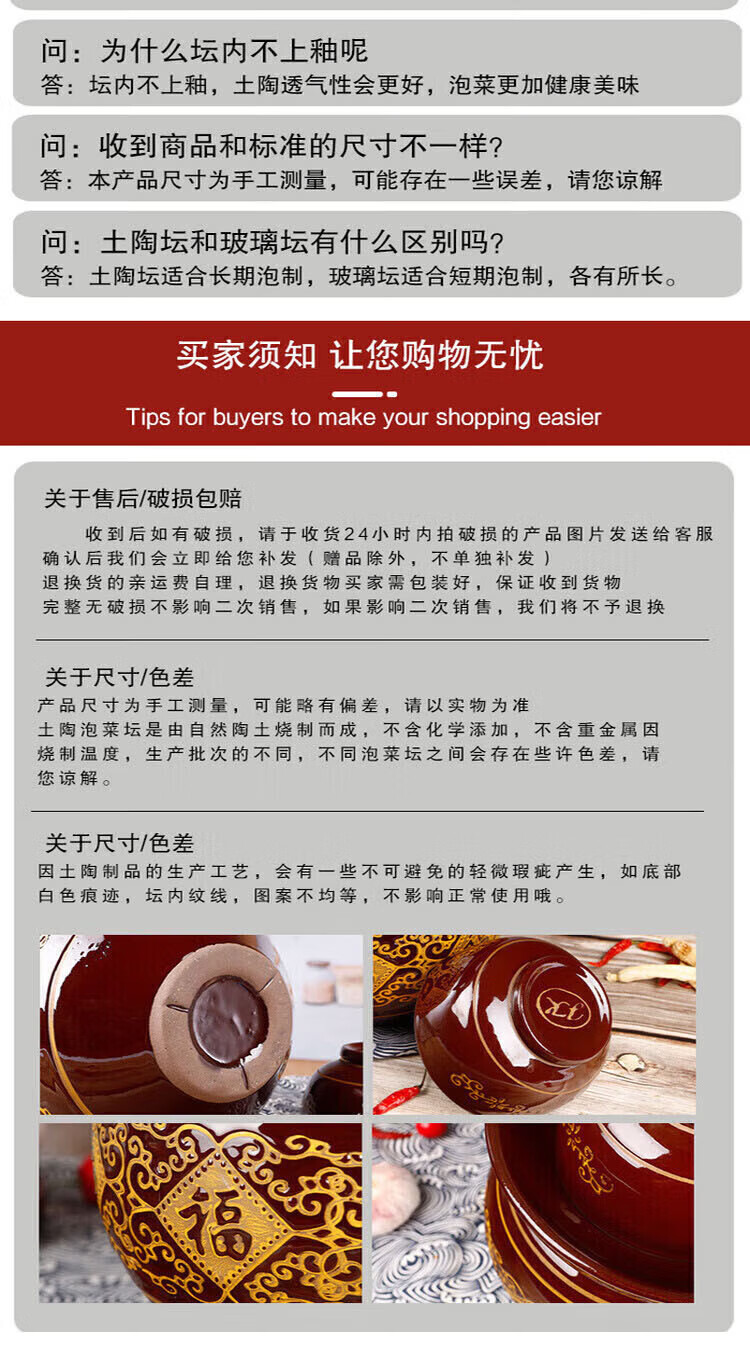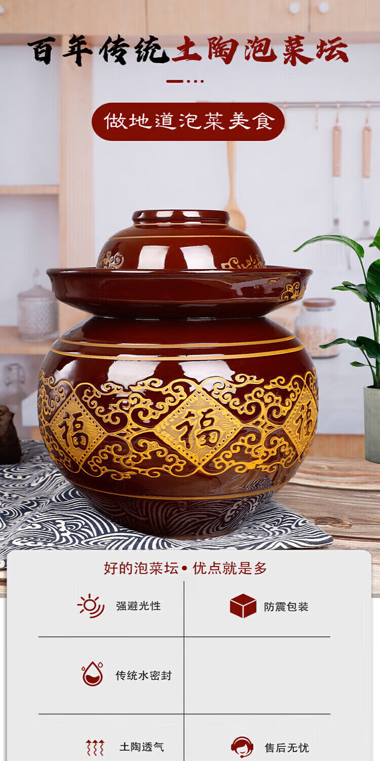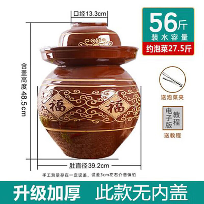 • 商品名称:熙意 泡菜坛子土陶老式陶瓷罐咸菜坛带盖酸菜缸可定制 56斤无内盖 56斤无内盖/个