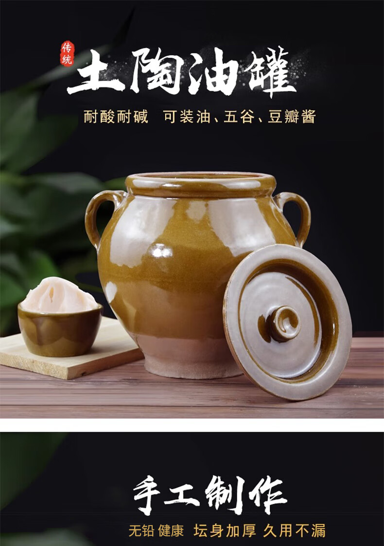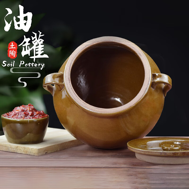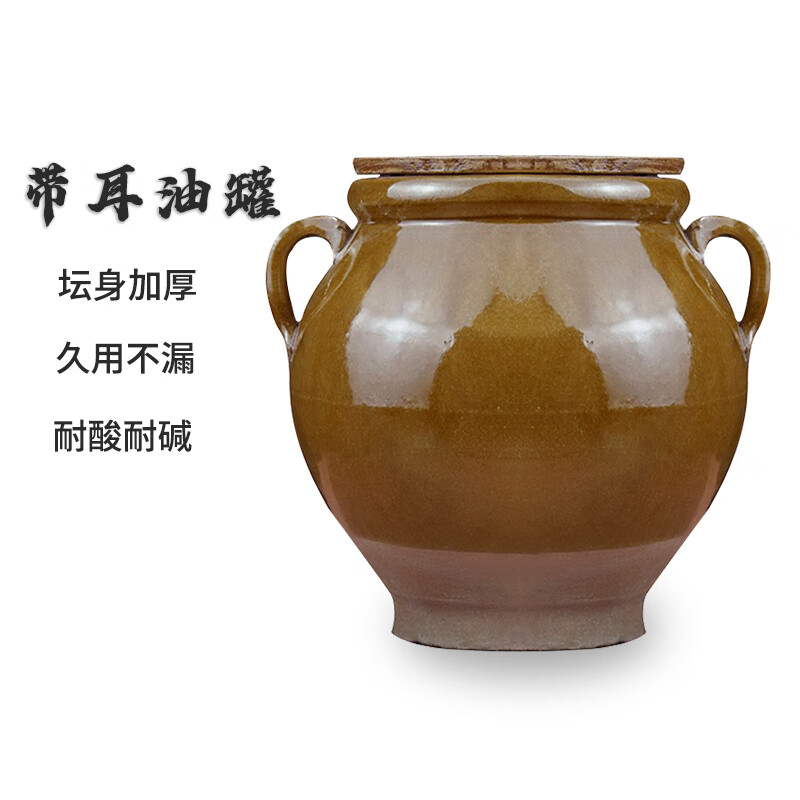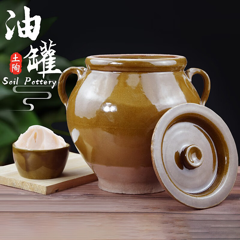 商品名称: 益美得 CC498 土陶猪油罐厨房老式装油罐子酱菜罐 10斤加厚带盖双耳款 CC498/个