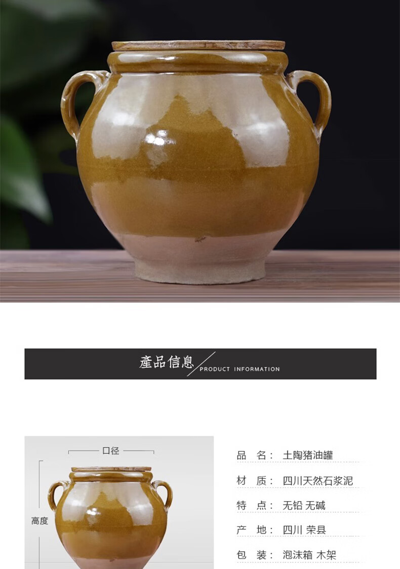• 商品名称:益美得 CC498 土陶猪油罐厨房老式装油罐子酱菜罐 10斤加厚带盖双耳款 CC498/个