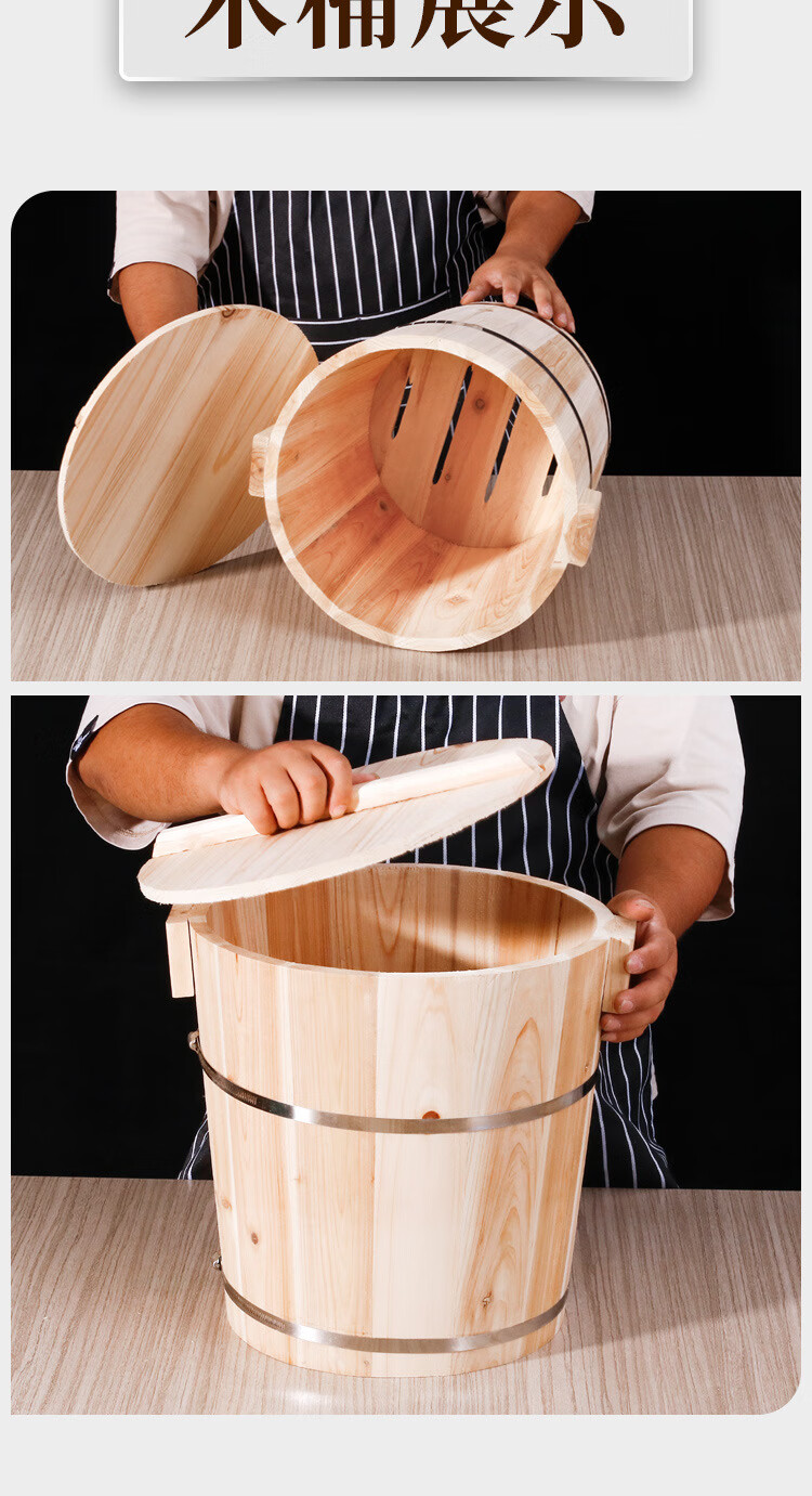 • 商品名称:敏奈 家用商用蒸饭木桶厨房神器蒸架带盖饭桶 50cm【无漆】 米桶/个