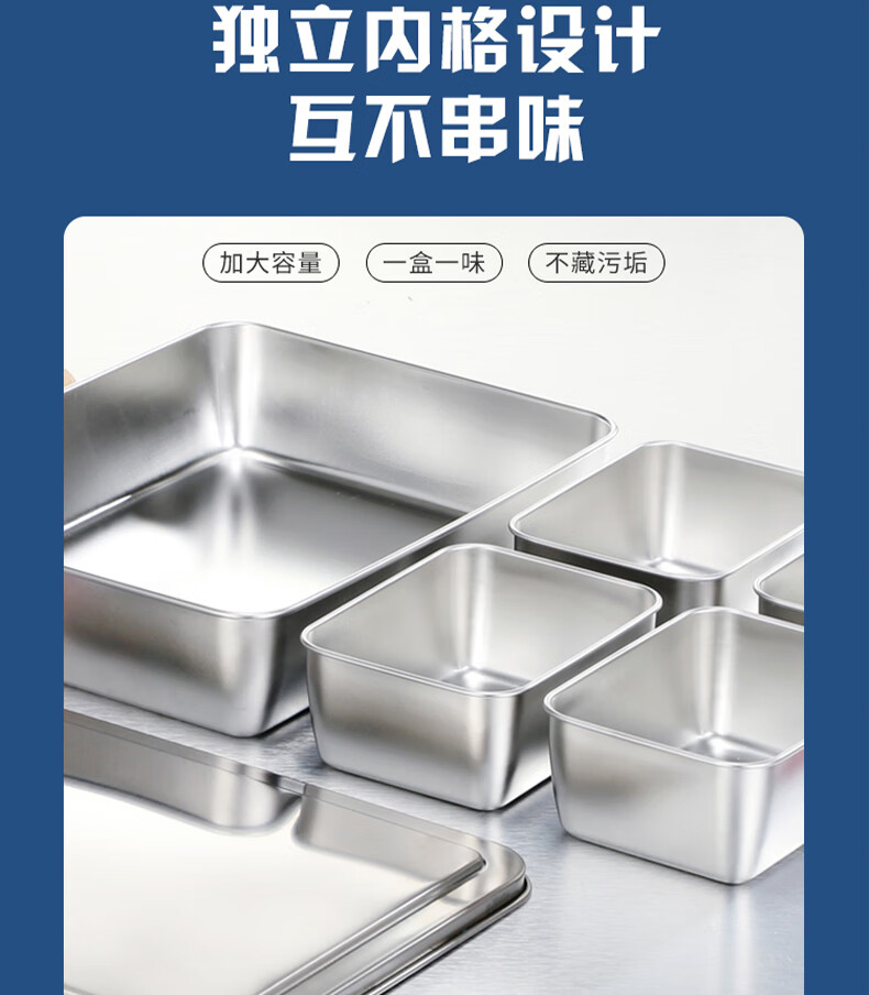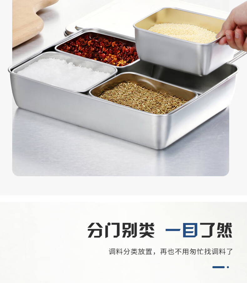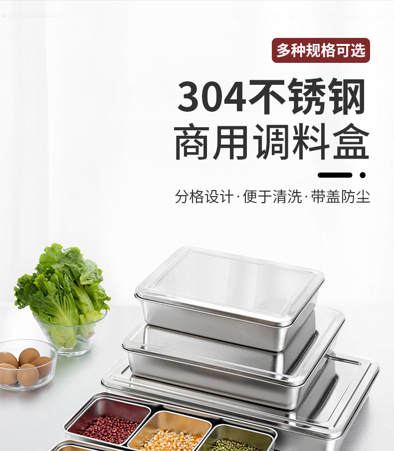 厨具  > 厨房储物  > 厨房储物器皿  >  Edo  >  Edo304不锈钢商用高档全钢调味盒 酒店餐厅调料储物盒2格+2勺带盖 1/个