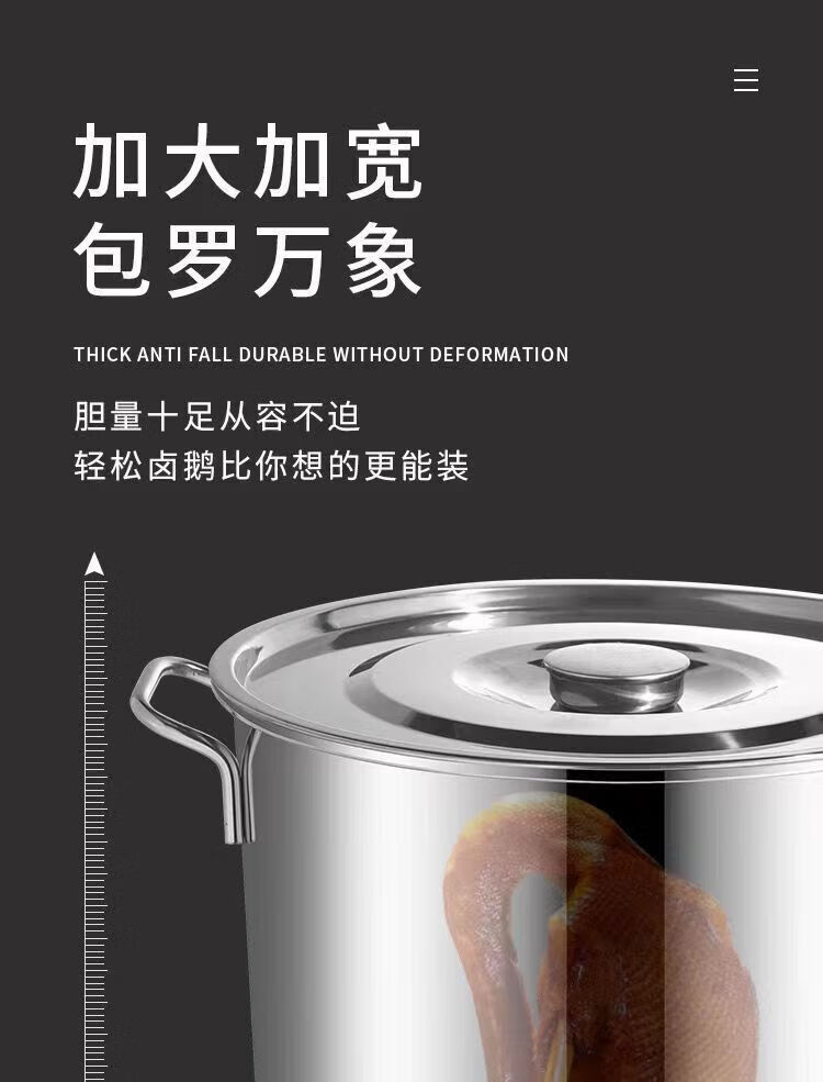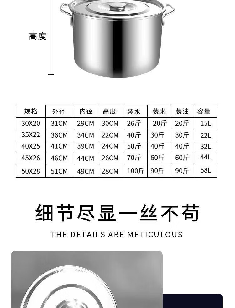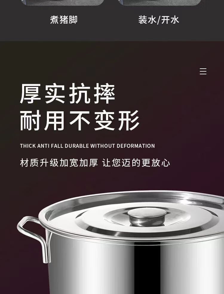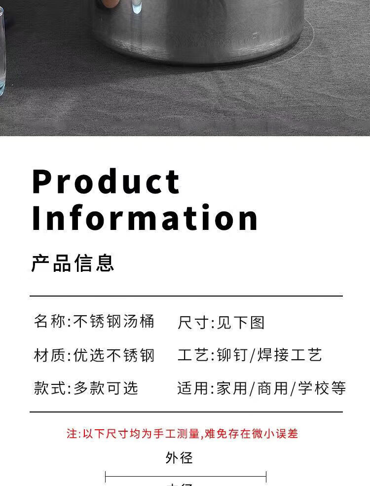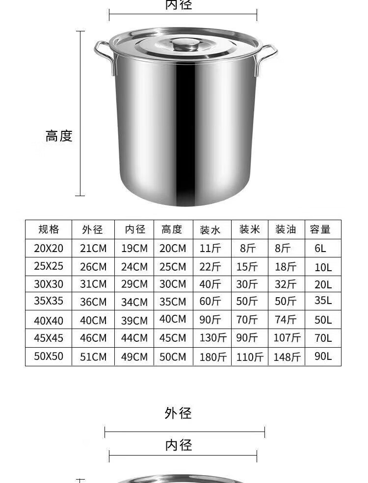 • 商品名称:悍路 不锈钢桶带盖汤桶加厚大汤锅储水桶卤水桶 35*24cm 加厚2.0 汤桶/个
