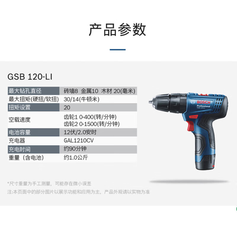 • 商品名称:博世(BOSCH)电钻冲击钻钻墙打孔多功能家用电动螺丝刀GSB120双电版12V锂电 GSB 120 双电版/台