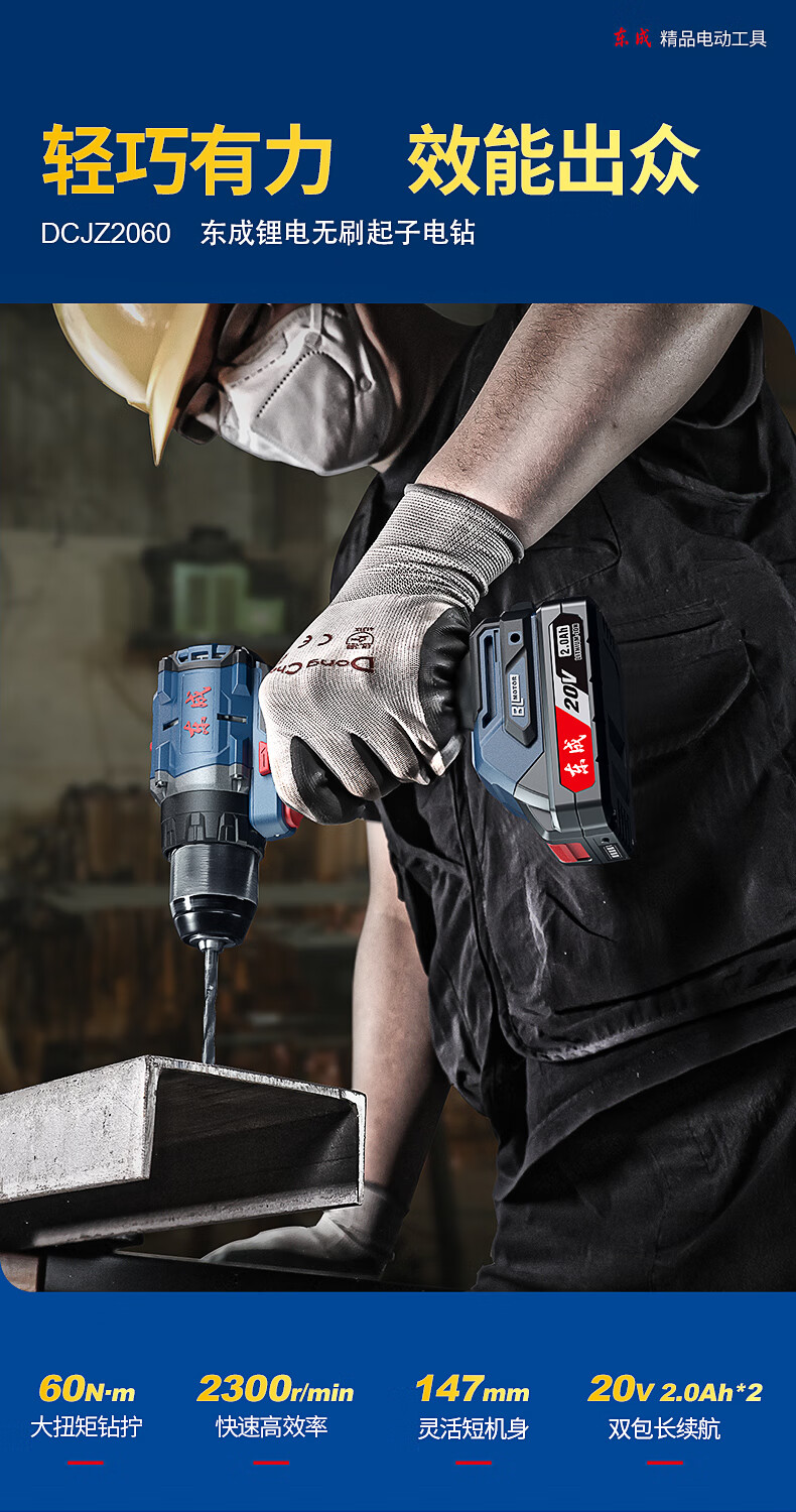 商品名称: 东成20V无刷手电钻DCJZ2060AM充电式电动螺丝刀双速正反转锂电钻 DCJZ2060AM/个