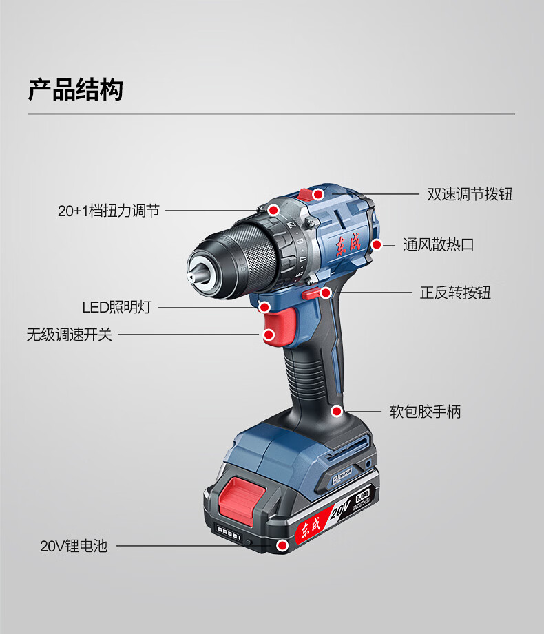 • 商品名称:东成20V无刷手电钻DCJZ2060AM充电式电动螺丝刀双速正反转锂电钻 DCJZ2060AM/个