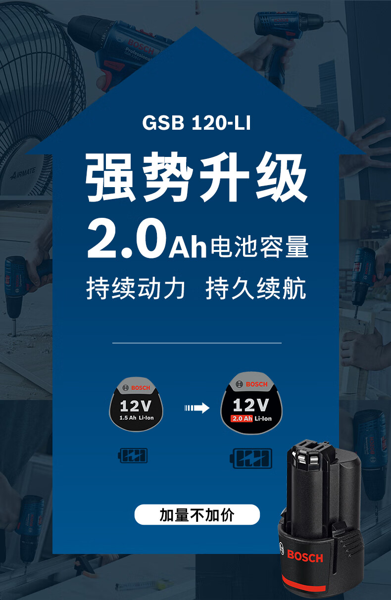 • 商品名称:博世(BOSCH)电钻钻墙打孔多功能家用螺丝刀GSB120双电12V锂电+小黑盒附件箱 GSB 120 2B+ 小黑盒/套