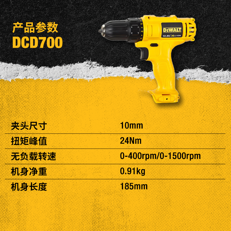 • 商品名称:得伟(DEWALT)12V锂电电钻起子电动螺丝刀两电一充套装DCD700DK2-A9 DCD700DK2-A9/套