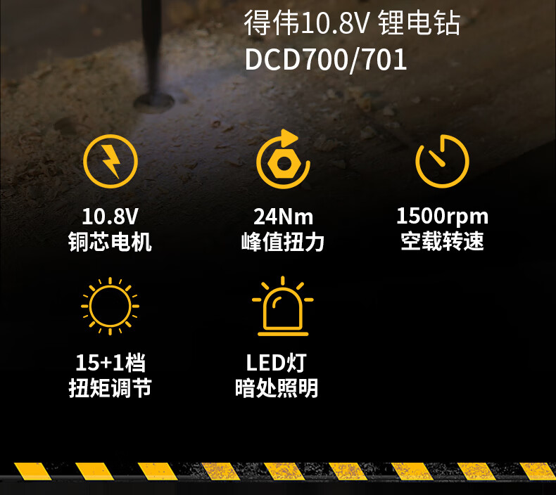 五金/工具  > 电动工具  > 电钻  >  得伟/DEWALT  >  得伟(DEWALT)12V锂电电钻起子电动螺丝刀两电一充套装DCD700DK2-A9 DCD700DK2-A9/套