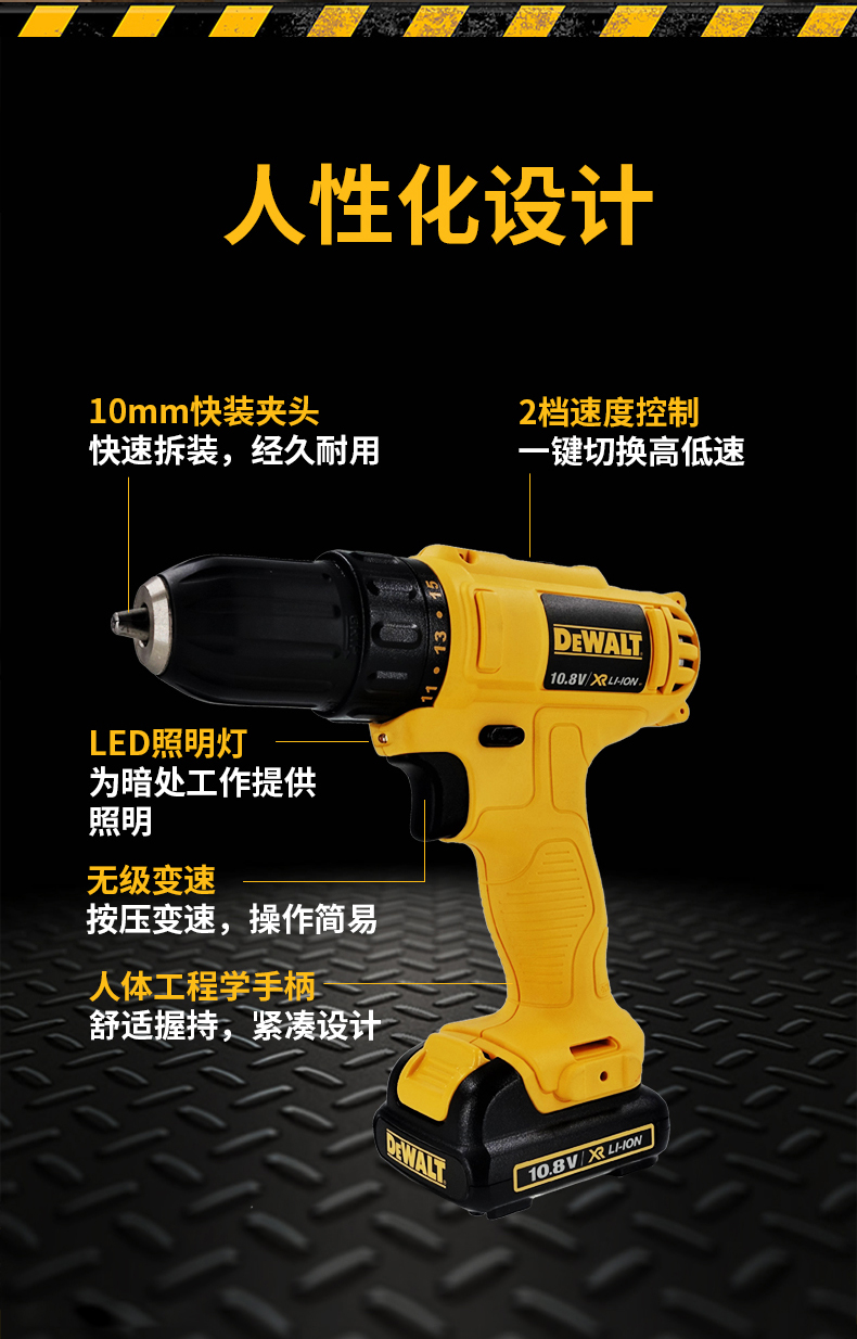 得伟(DEWALT)12V锂电电钻起子电动螺丝刀两电一充套装DCD700DK2-A9 DCD700DK2-A9/套