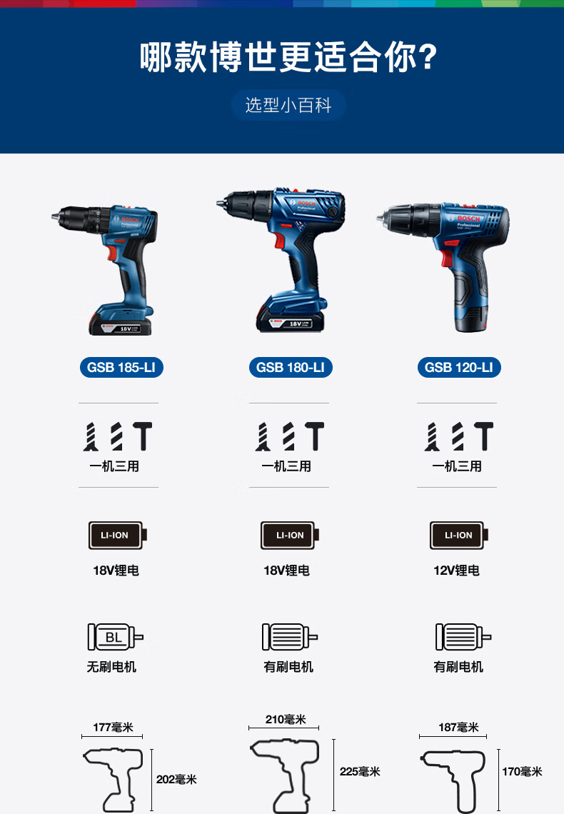 • 商品名称:博世(BOSCH)电钻冲击钻电动螺丝刀钻墙打孔无刷锂电GSB185 18V双电小黑侠套装 GSB 185 小黑侠套装/套