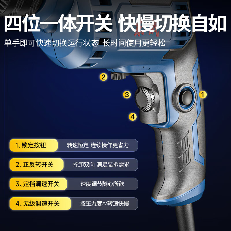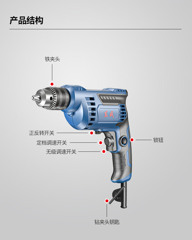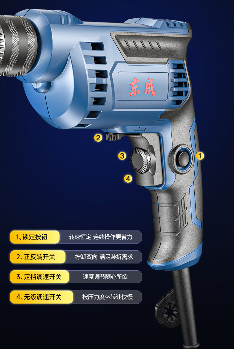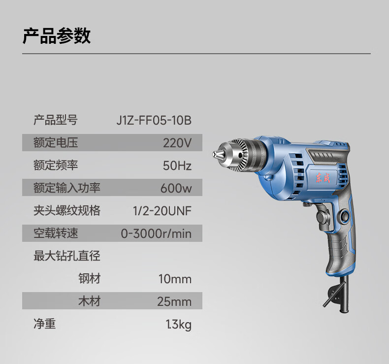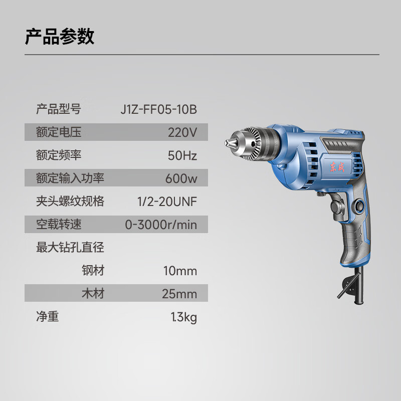 • 商品名称:东成600W手电钻正反转可调速多功能家用电钻电动工具J1Z-FF05-10B J1Z-FF05-10B/台