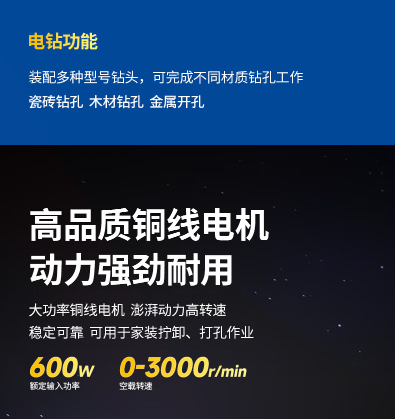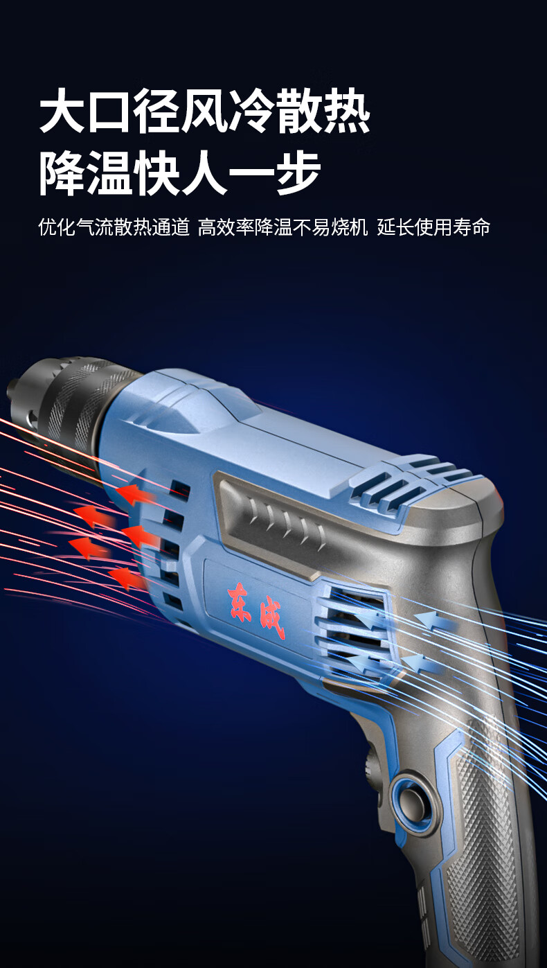 商品名称: 东成600W手电钻正反转可调速多功能家用电钻电动工具J1Z-FF05-10B J1Z-FF05-10B/台