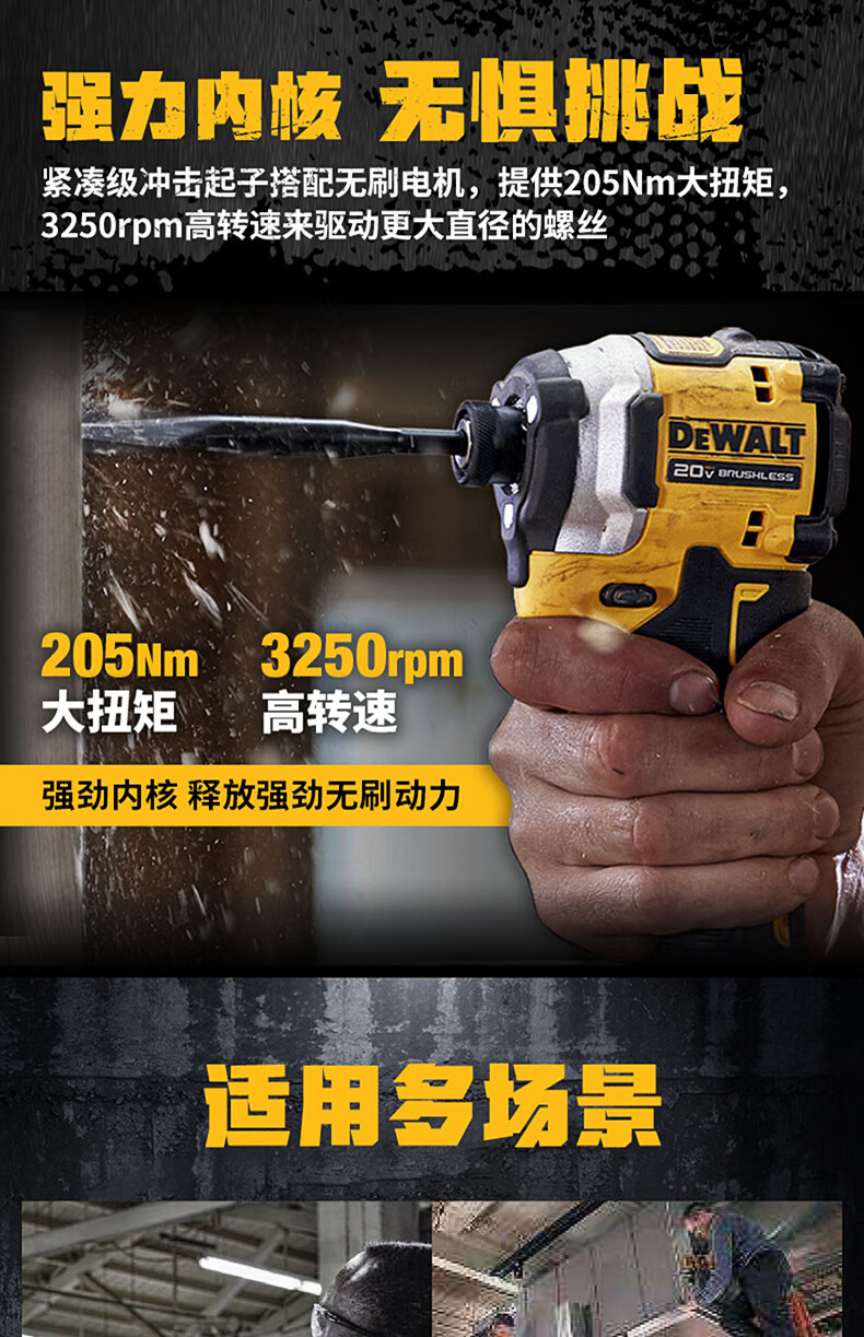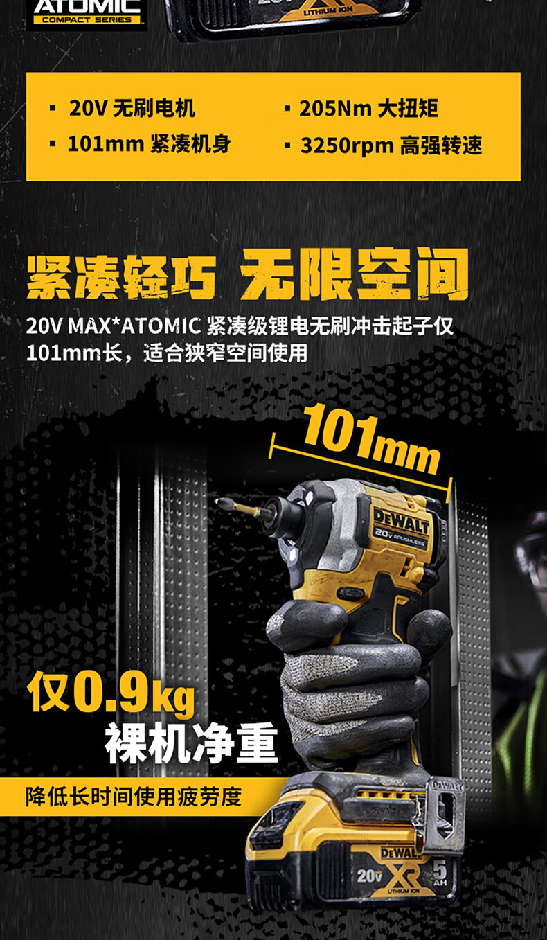 • 商品名称:得伟(DEWALT)20V无线锂电无刷冲击起子电钻单机205Nm超大扭矩DCF850N-A9 DCF850N-A9/件