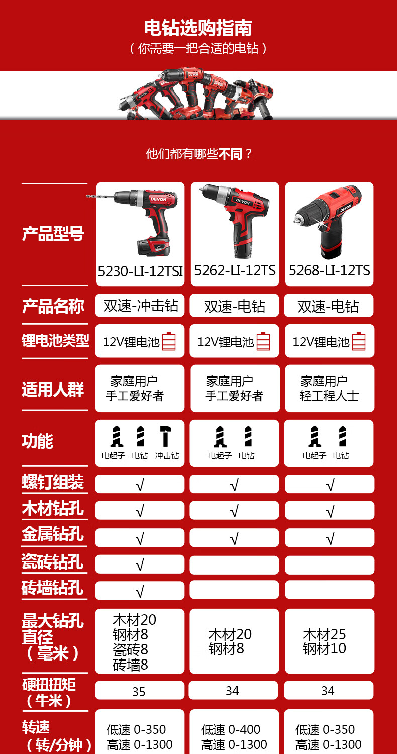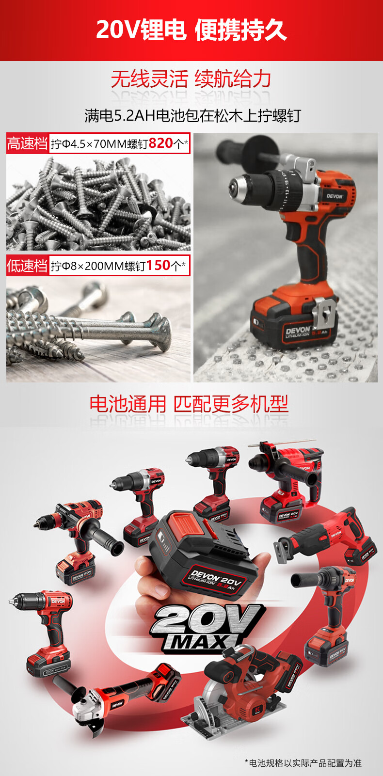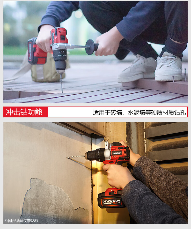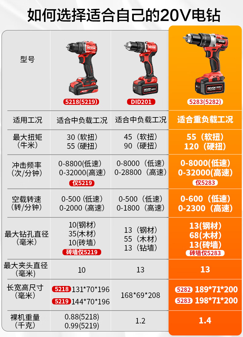 商品名称: 大有(Devon) 20V工业级无刷锂电钻冲击钻5283充电手电钻起子机120牛裸机 5283-Li-20TSI/N/台