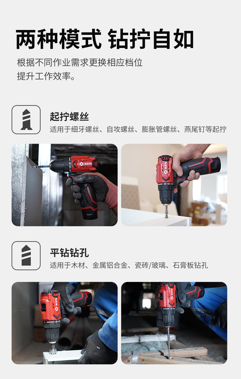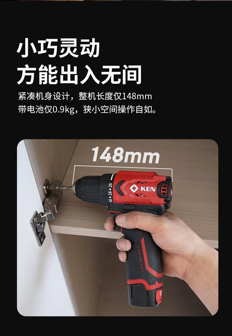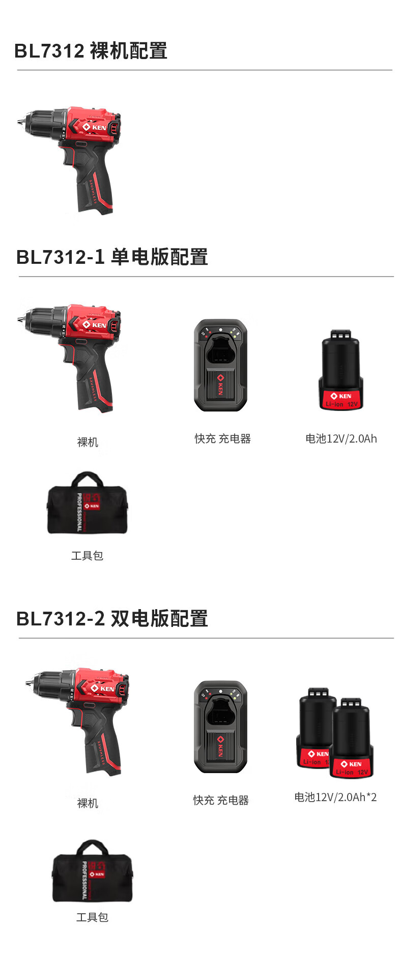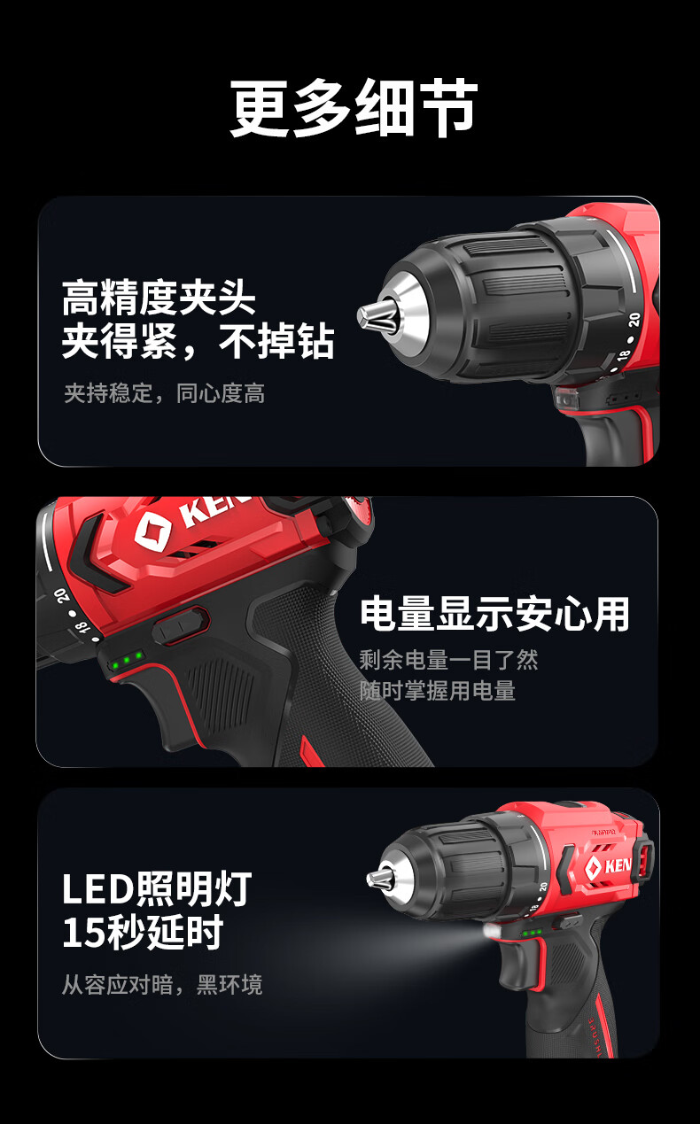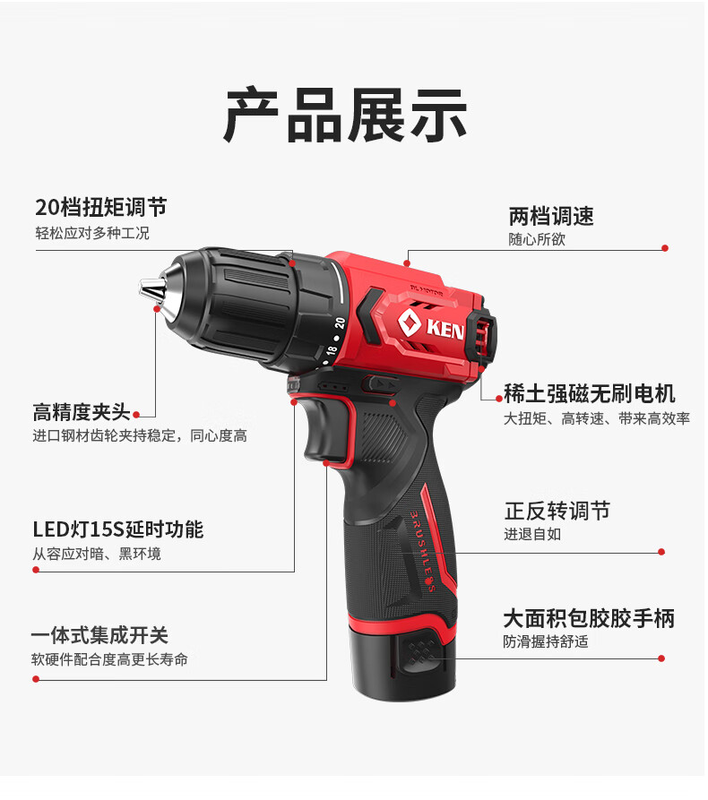 五金/工具  > 电动工具  > 电钻  >  锐奇/KEN  >  锐奇(KEN)锂电钻无刷手电钻充电钻家用12V螺丝刀起子BL7312-2双电电动工具 7312/套