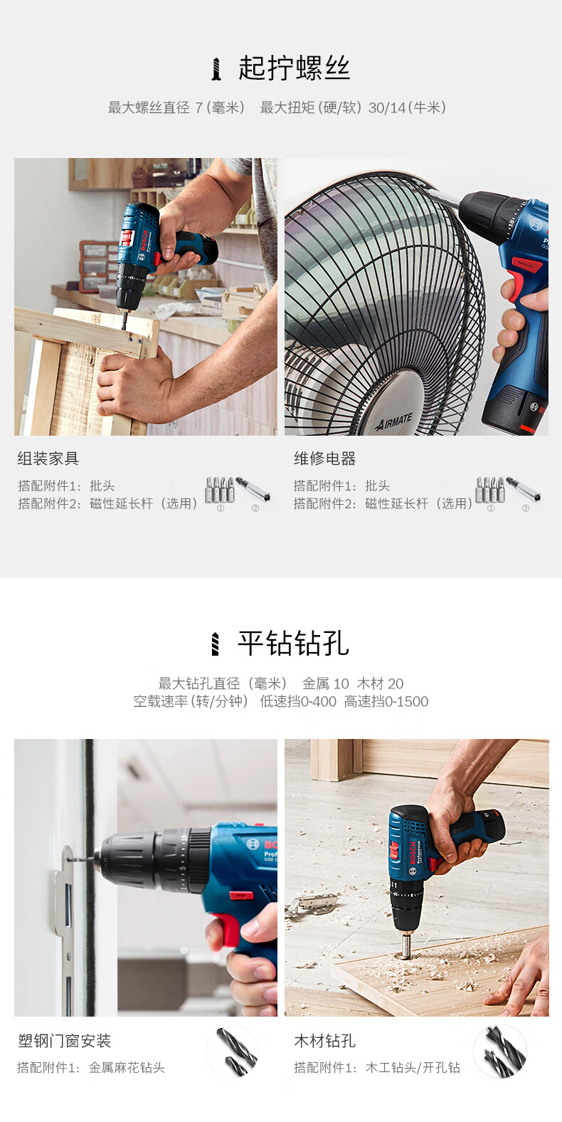 • 商品名称:博世(BOSCH)电钻钻墙打孔多功能家用螺丝刀GSB120单电12V锂电+小黑盒附件箱 GSB 120 单电促销版/套