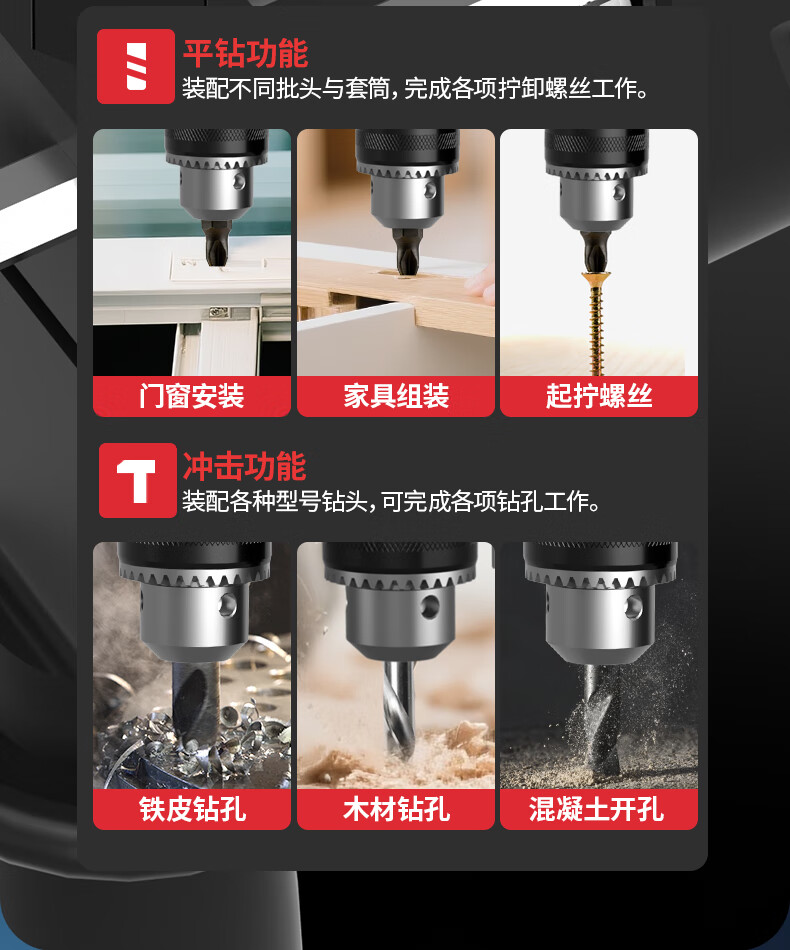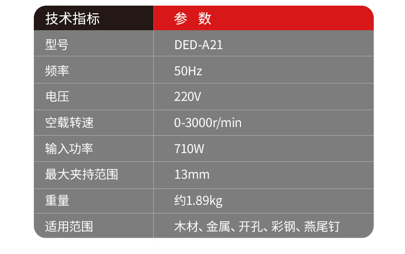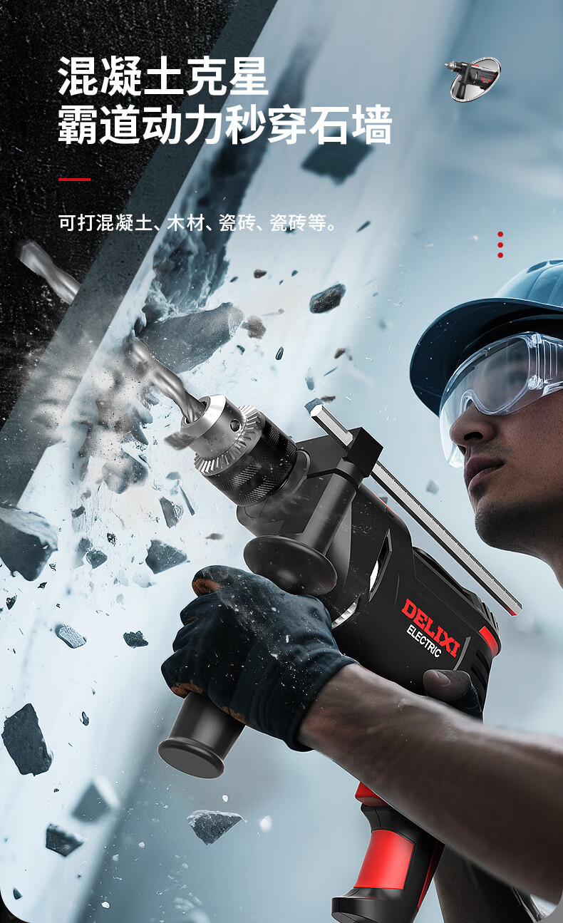 商品名称: 德力西电气冲击钻工业级手电钻电钻两用多功能家用电钻电动螺丝刀 710W DECEDAC21700/台