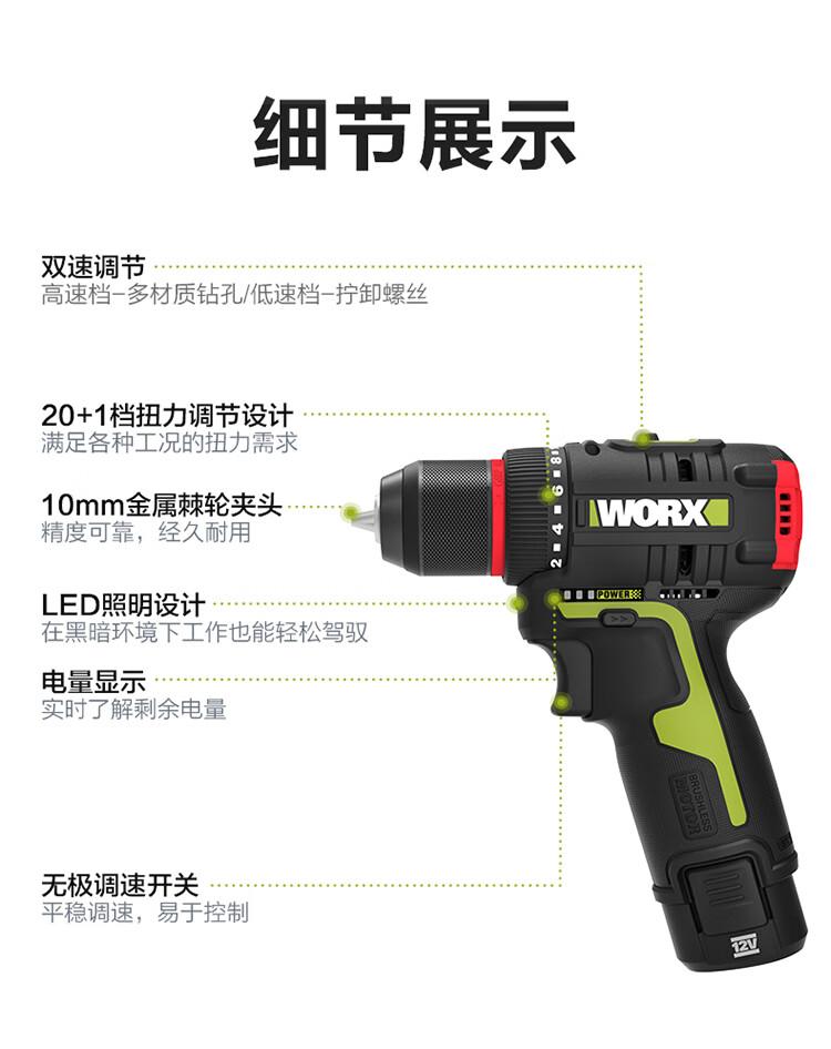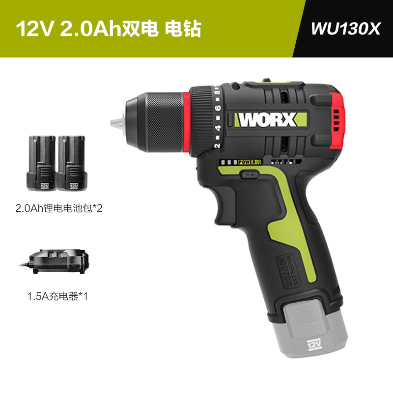 五金/工具  > 电动工具  > 电钻  >  威克士/WORX  >  威克士12伏40N无刷手电钻WU130X(双电)电动螺丝刀锂电池手枪钻电动工具 WU130X/套