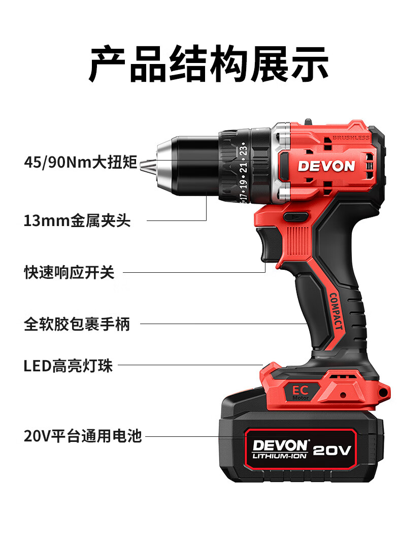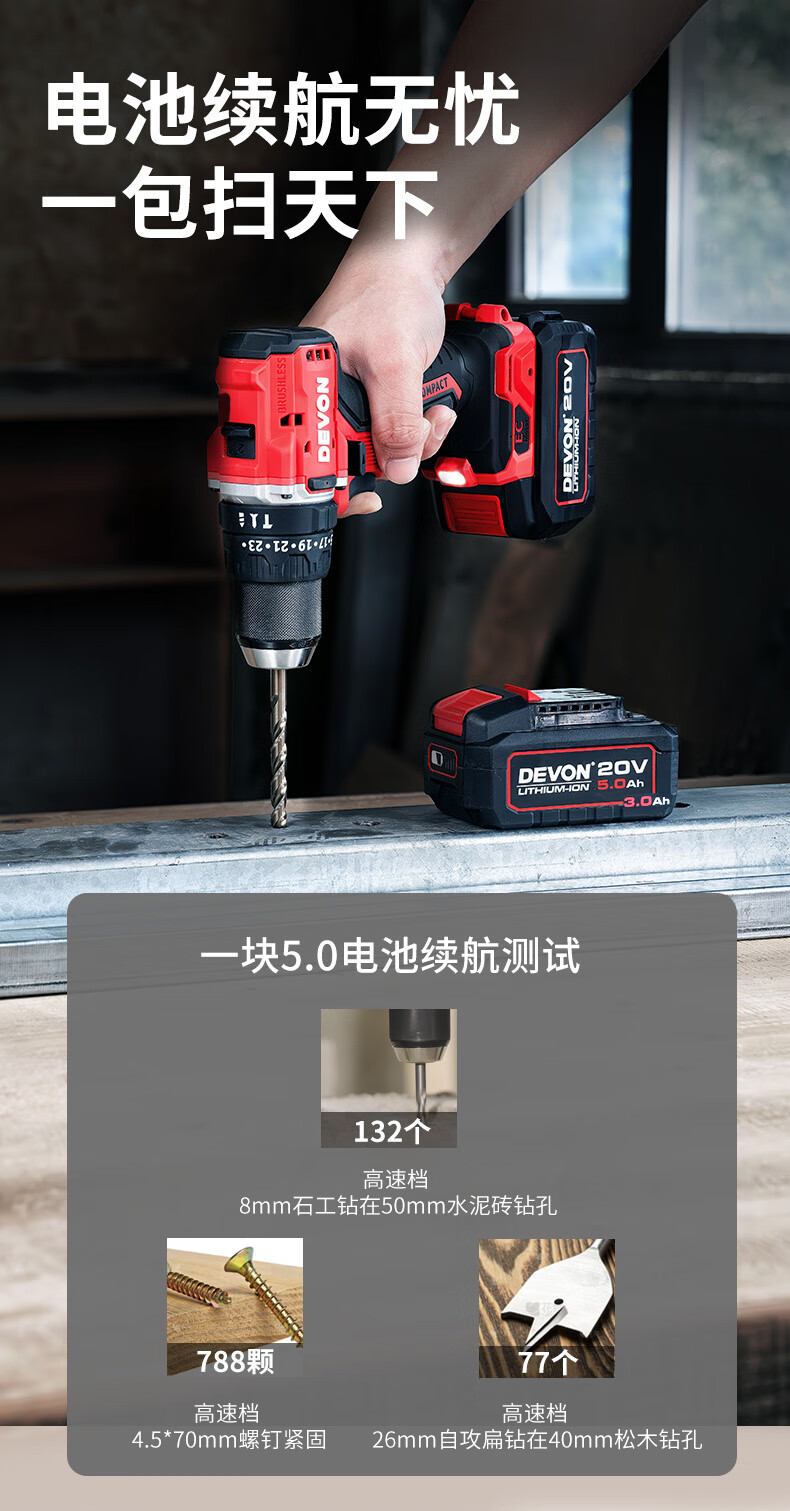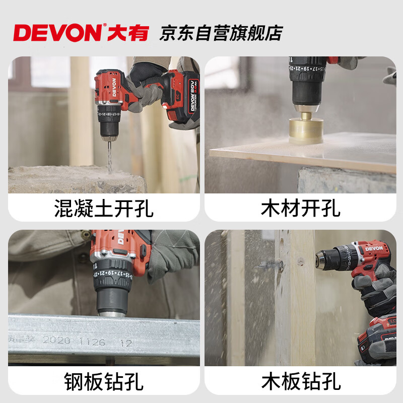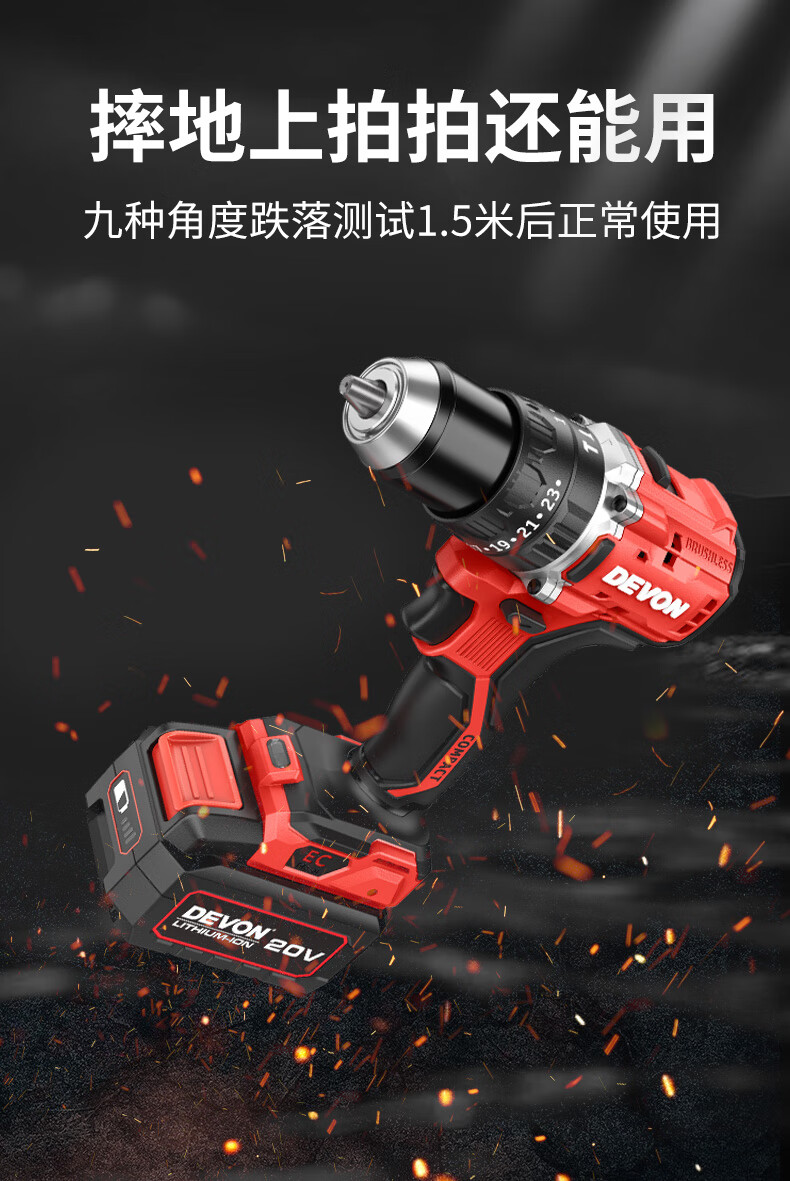 • 商品名称:大有(Devon)20V无刷电动充电手电钻锂电钻两用冲击钻混凝土DID201单电4.0快充 DID201/个