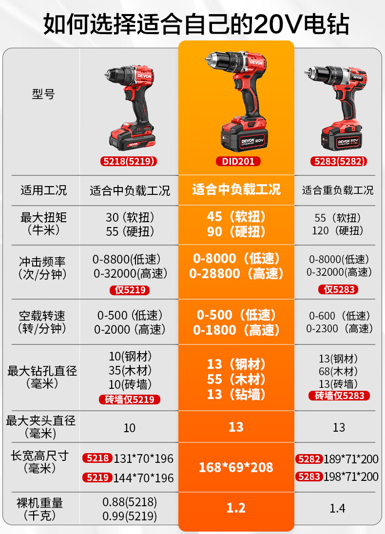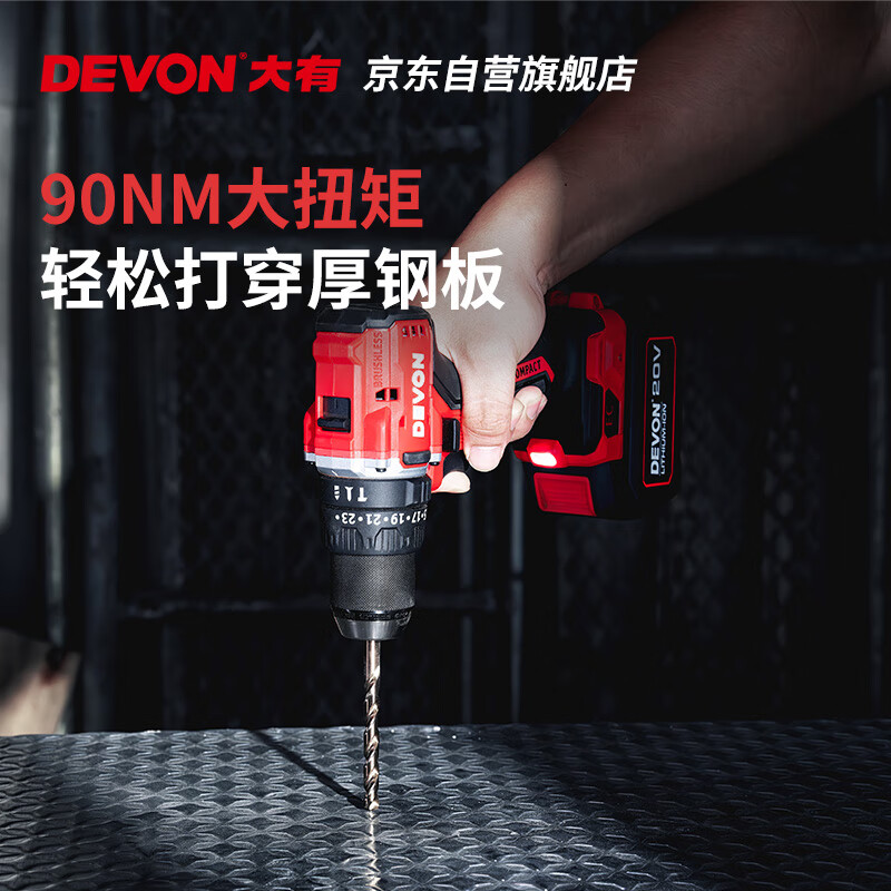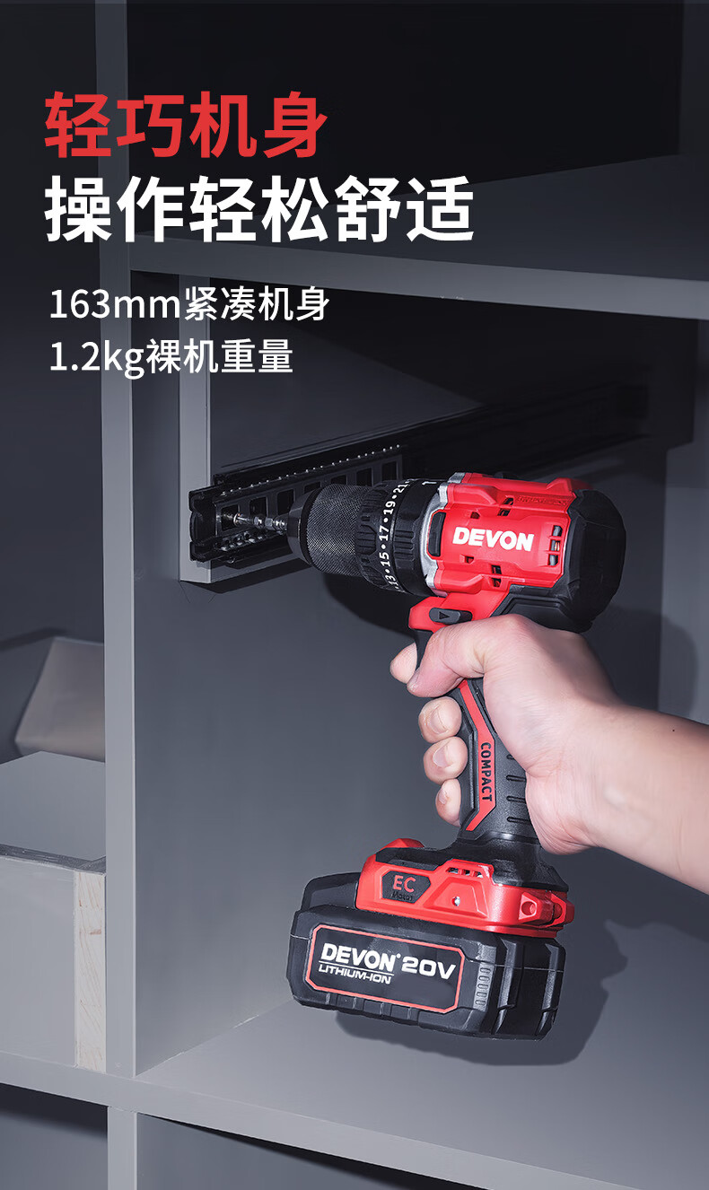 五金/工具  > 电动工具  > 电钻  >  大有/Devon  >  大有(Devon)20V无刷电动充电手电钻锂电钻两用冲击钻混凝土DID201单电4.0快充 DID201/个