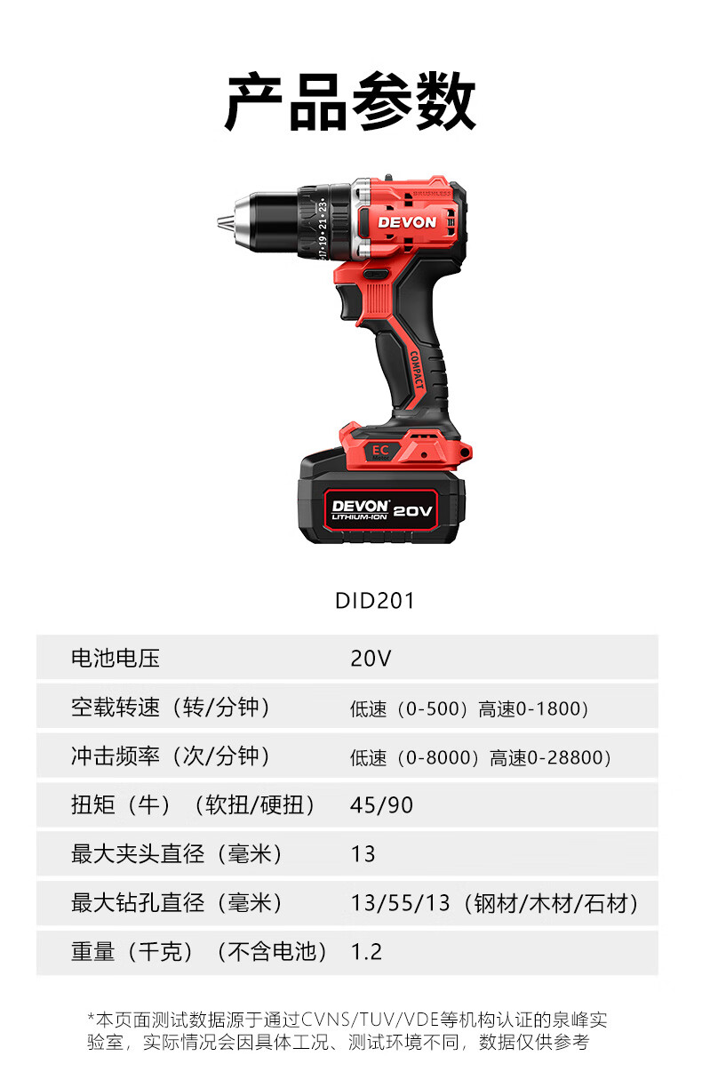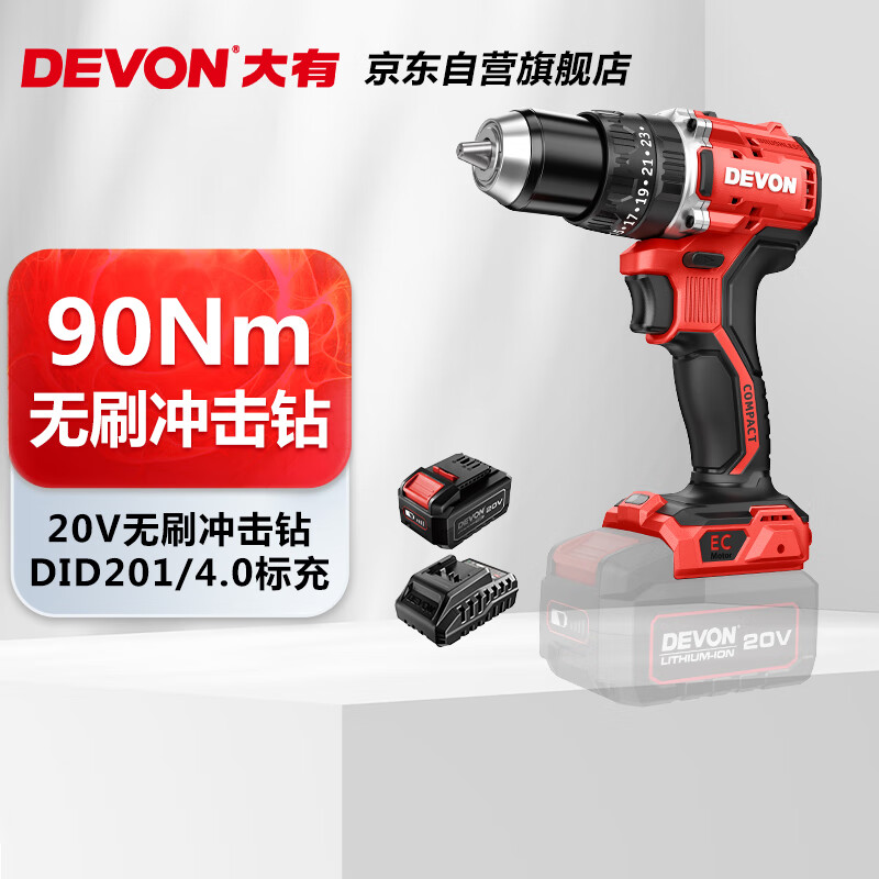 商品名称: 大有(Devon)20V无刷电动充电手电钻锂电钻两用冲击钻混凝土DID201单电4.0快充 DID201/个