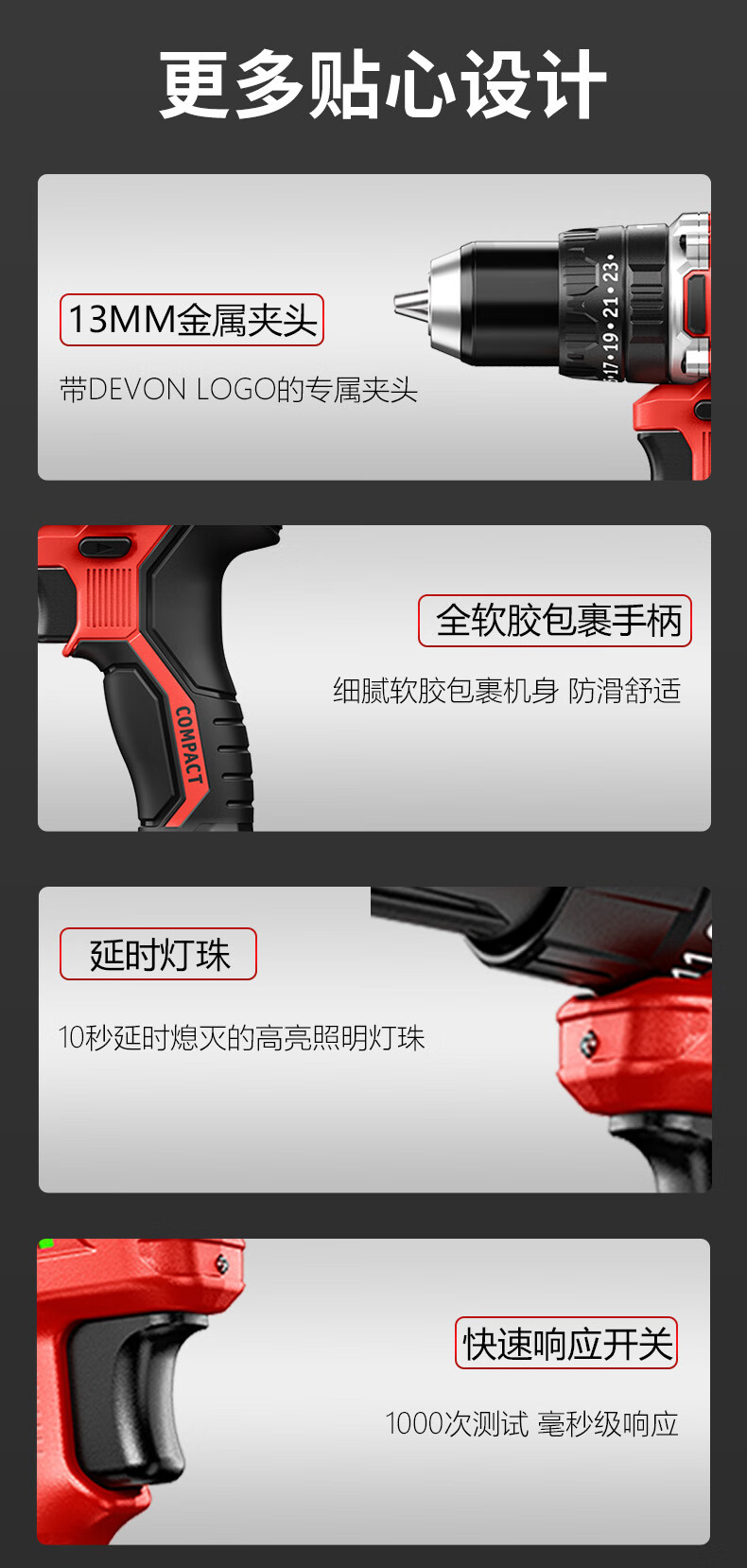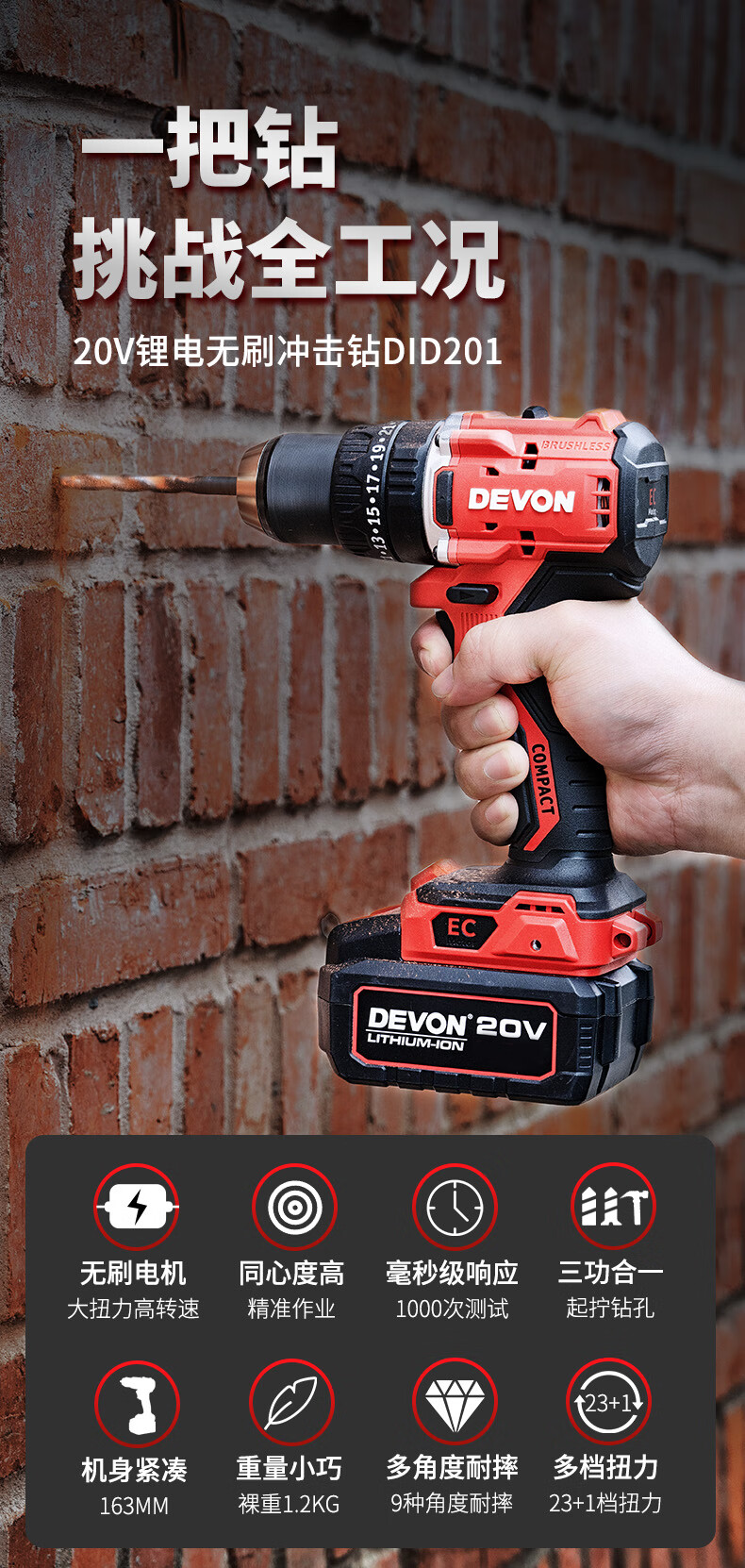 大有(Devon)20V无刷电动充电手电钻锂电钻两用冲击钻混凝土DID201单电4.0快充 DID201/个