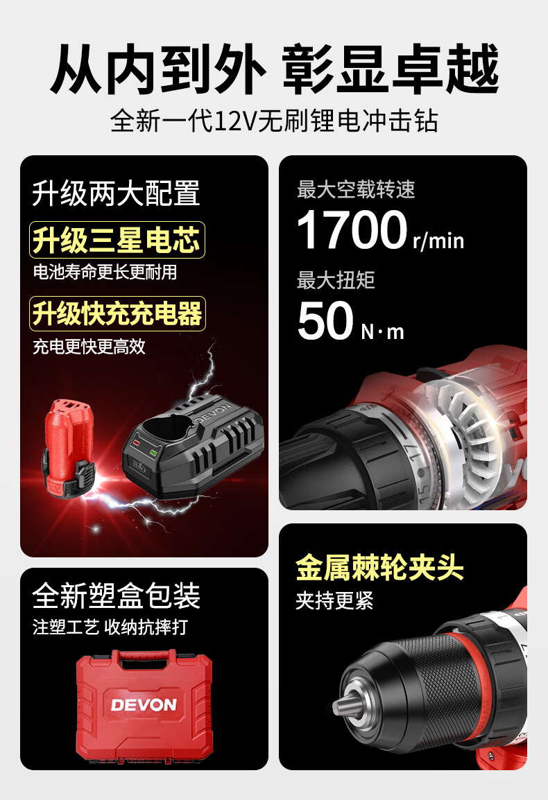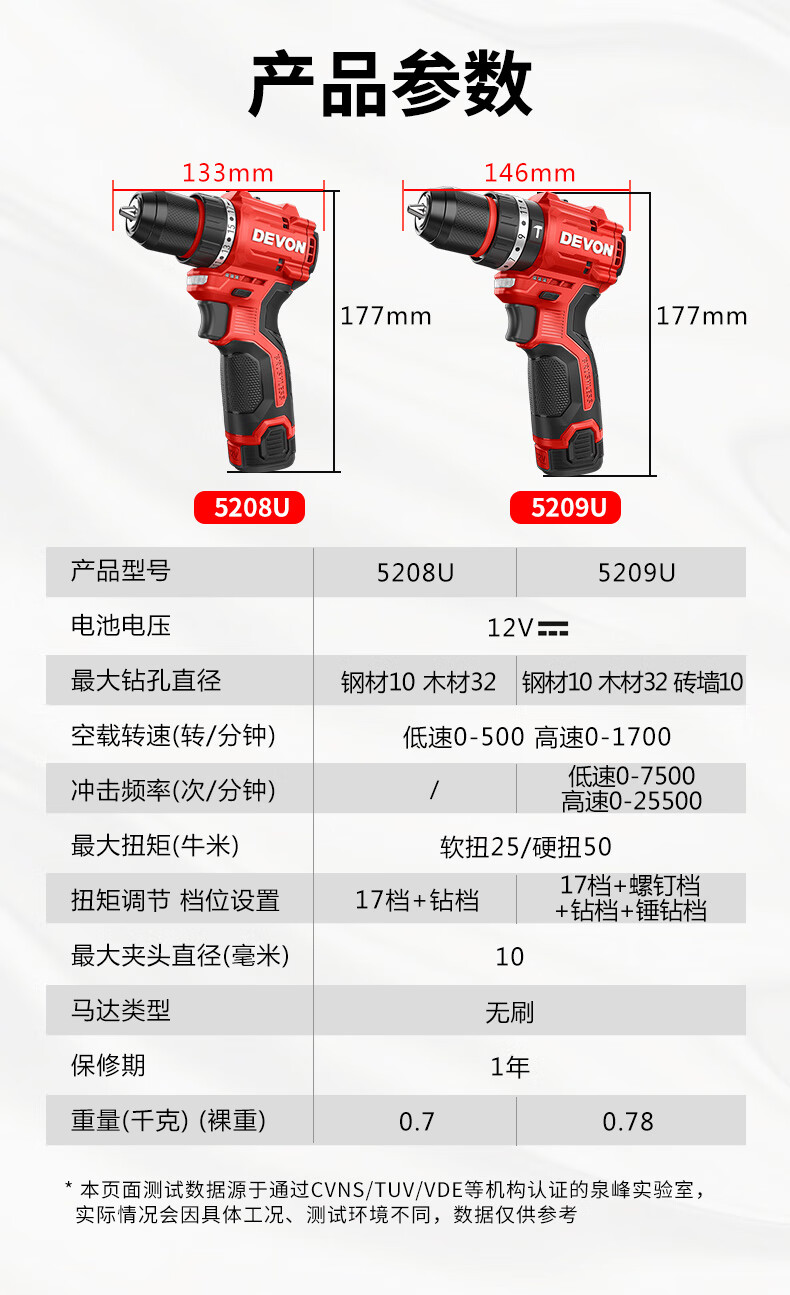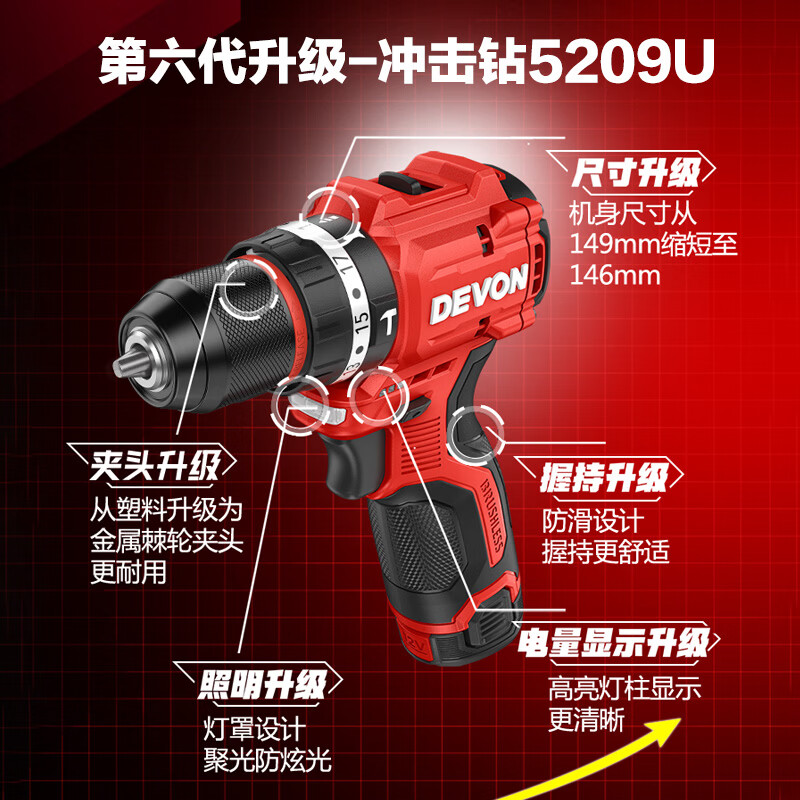 大有(Devon)京东集采JC系列12V无刷冲击手电钻电动螺丝刀工具5209U自营专供S7 5209U/套