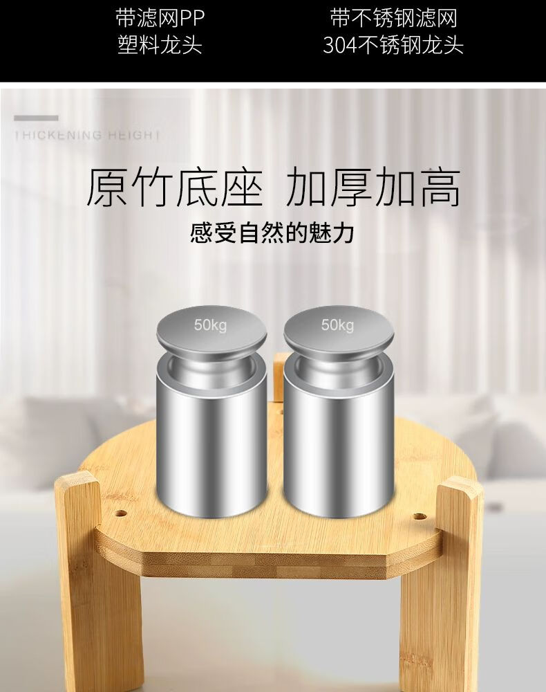 商品名称: 轩坤派 饮水机桶玻璃水桶储水用纯净水桶大容量功夫茶储水罐功夫茶水桶 30斤+竹座+陶瓷不锈钢龙头 咖啡色盖子/个