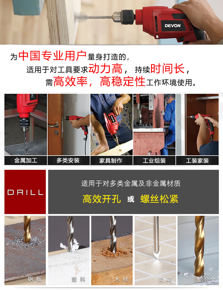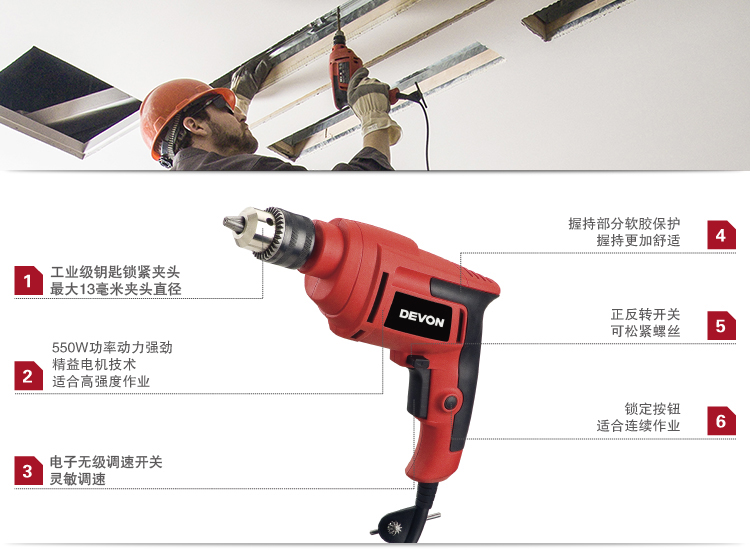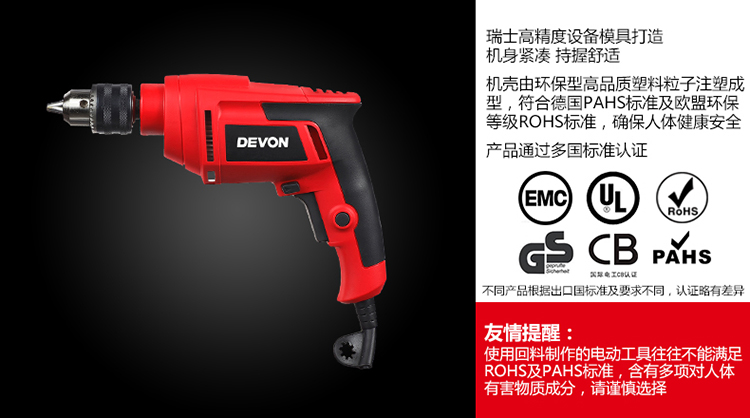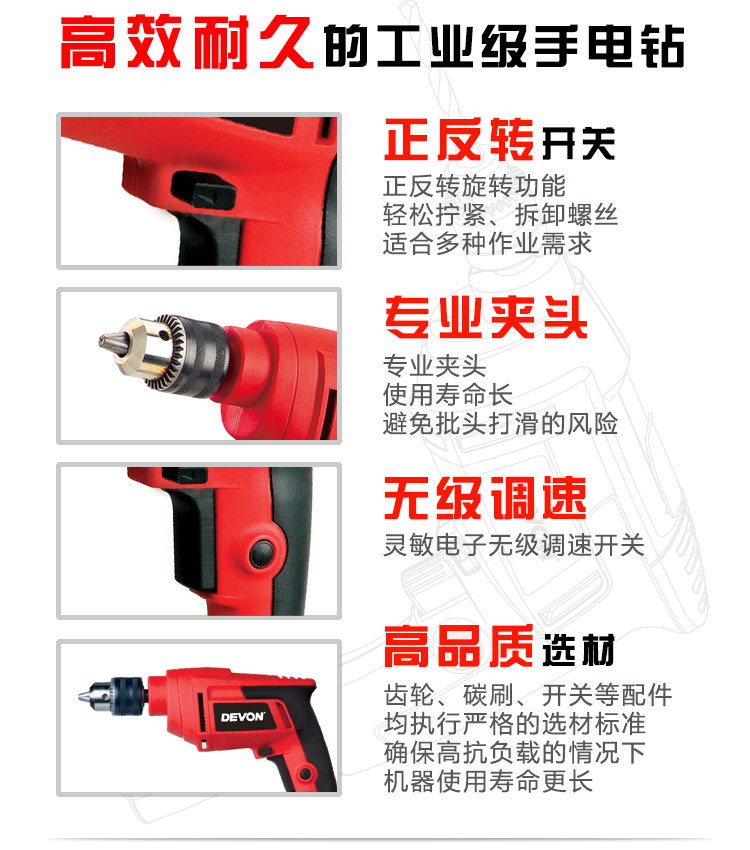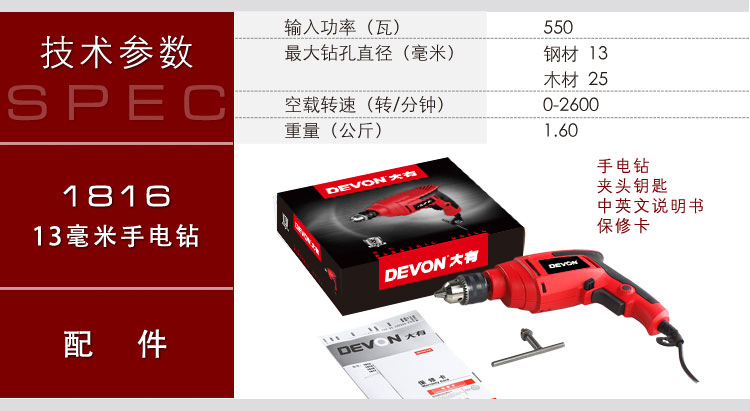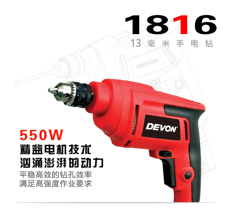 商品名称: 大有(Devon)13mm手电钻1816电动螺丝刀可调速正反转工业级多钻孔拧螺丝 1816/台