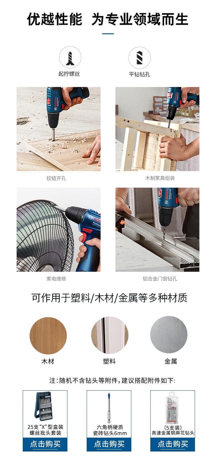 商品名称: 博世(BOSCH)起子机电钻电动螺丝刀家具钻孔安装GSR120-LI 2.0Ah单电12V锂电 GSR 120-Li 单电版/台