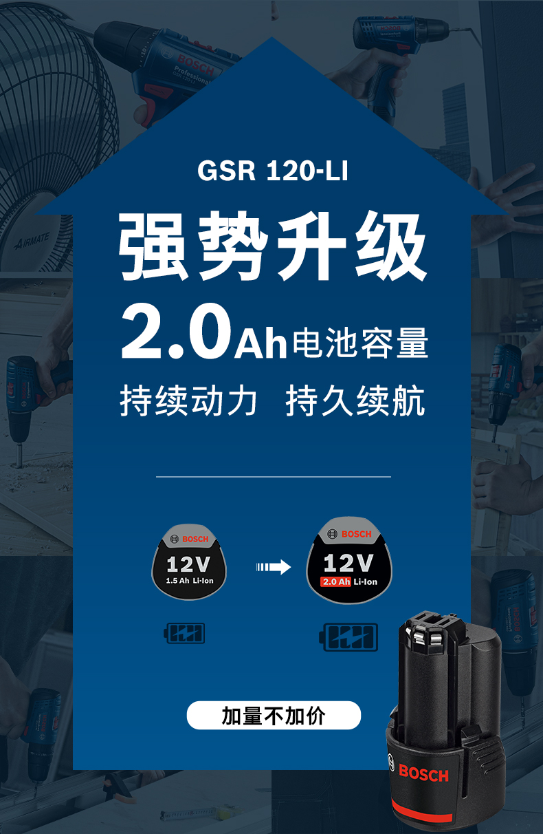 五金/工具  > 电动工具  > 电钻  >  博世/BOSCH  >  博世(BOSCH)起子机电钻电动螺丝刀家具钻孔安装GSR120-LI 2.0Ah单电12V锂电 GSR 120-Li 单电版/台