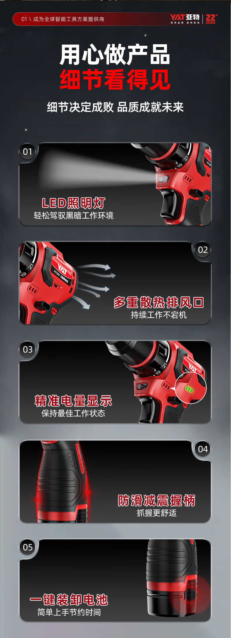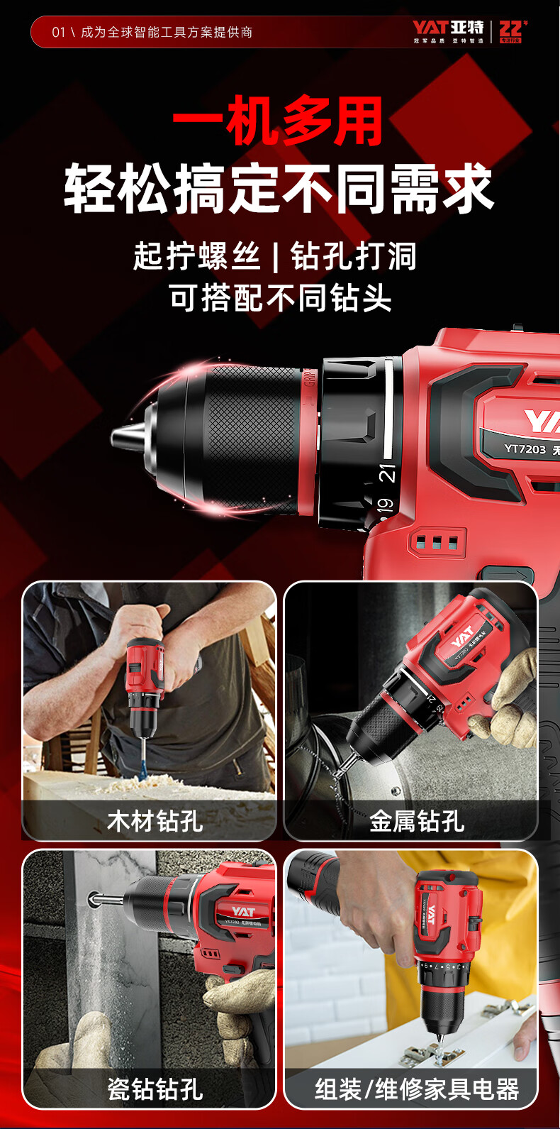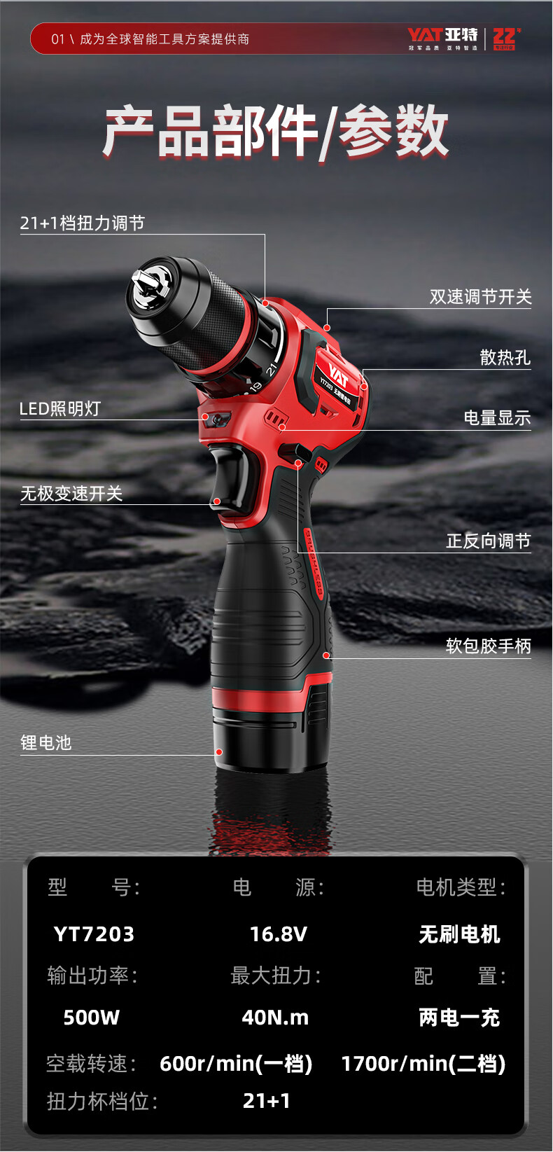 • 商品名称:亚特(YAT)无刷手电钻 小钢炮16V大扭矩手电钻充电钻电动螺丝刀家用起子机 YT7203/台
