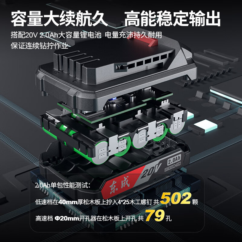 东成20V锂电钻DCJZ2059D无刷手电钻充电式电动螺丝刀起子机单电套装 DCJZ2059D/套