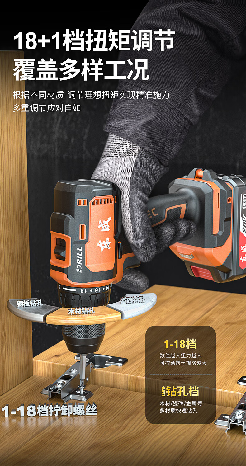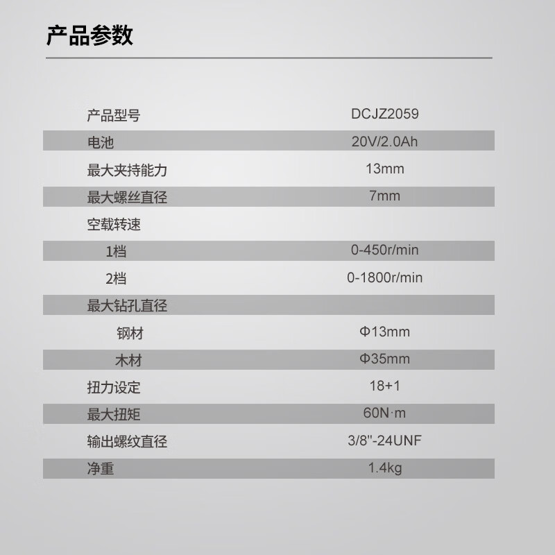 商品名称: 东成20V锂电钻DCJZ2059D无刷手电钻充电式电动螺丝刀起子机单电套装 DCJZ2059D/套