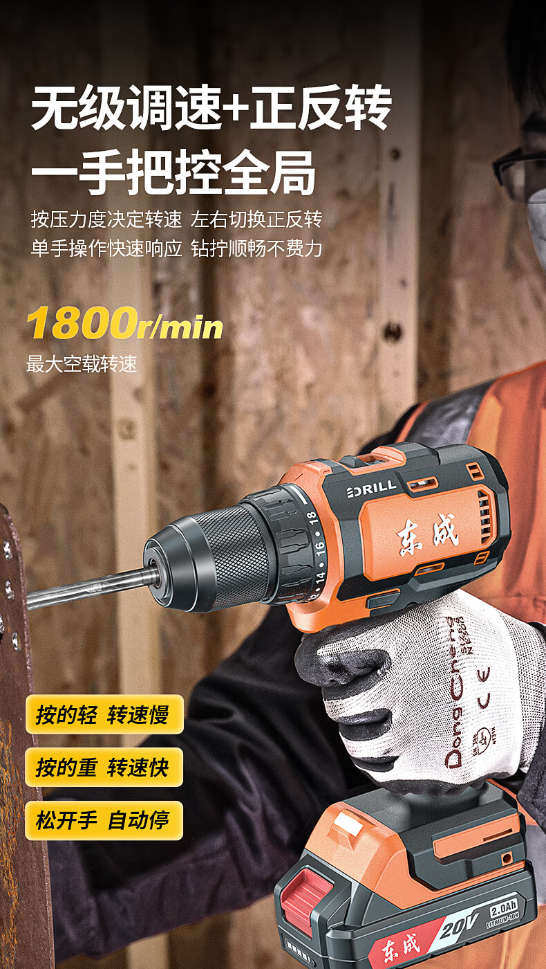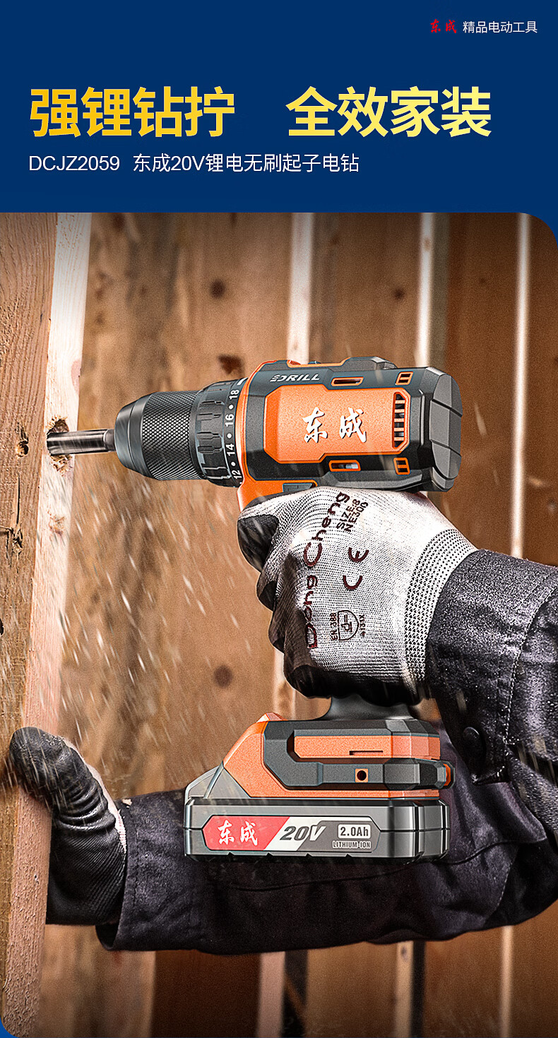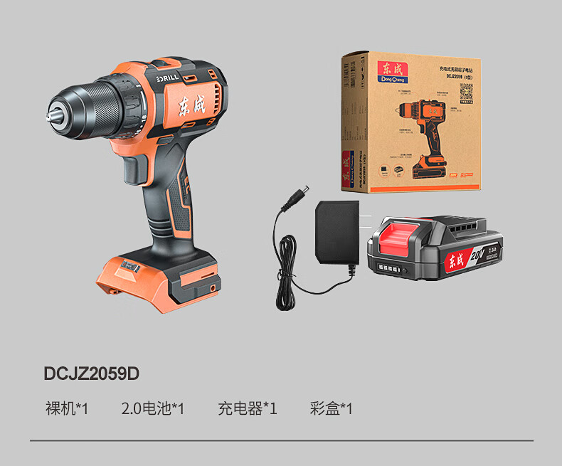 • 商品名称:东成20V锂电钻DCJZ2059D无刷手电钻充电式电动螺丝刀起子机单电套装 DCJZ2059D/套